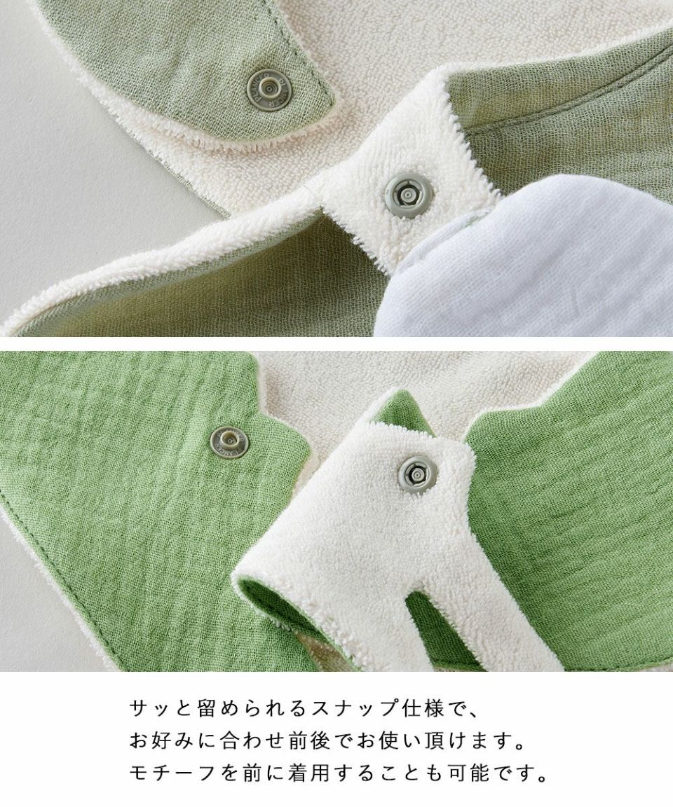Wガーゼとパイルの二層で、 よだれや食べこぼしも しっかりキャッチします。