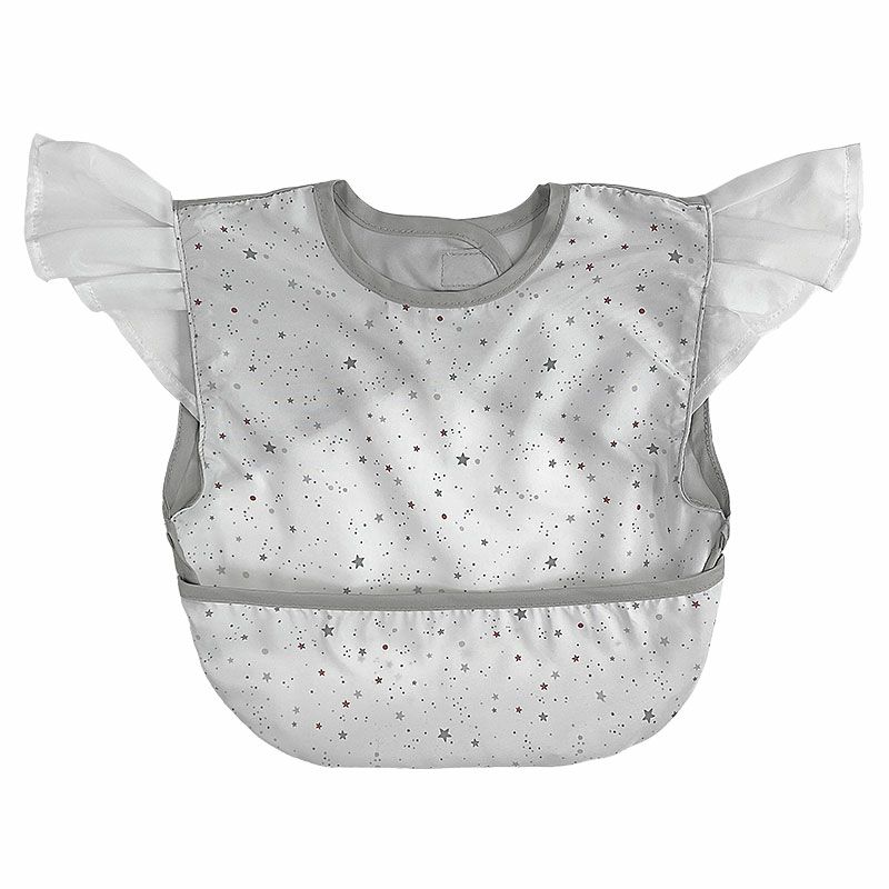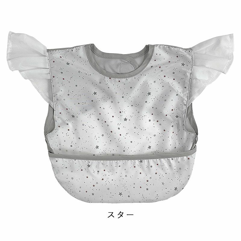 ラッピング無料 ママがつくるベビーグッズブランド ボリュームのある肩フリルが可愛いお食事エプロン 出産祝いにもおすすめ クリアボックス入り