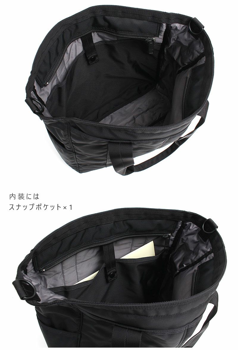 本体はファスナー開閉で、中にはスナップポケットを装備。