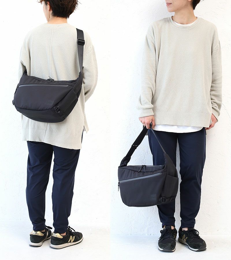 マチ幅がベルトで調節でき、スタイリッシュに持つことも、荷物をたくさん入れることもできます。
