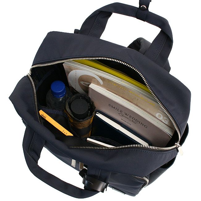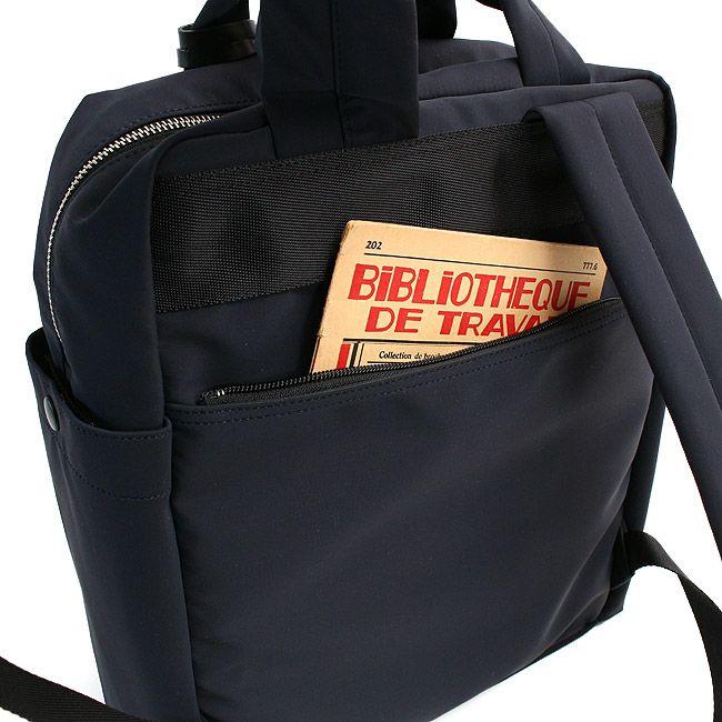 2WAYデイパックは左右にペットボトルや折り畳み傘が収納できるポケット、また背面にもファスナー付きのポケットを備えた収納力の高い機能的なモデルです。A4サイズ対応。