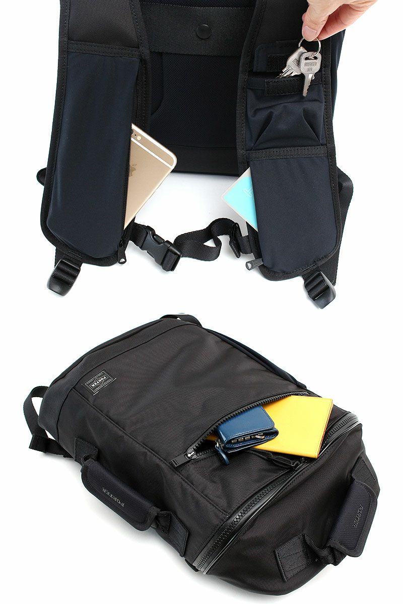 自転車通勤での使用も想定し、全型共通でカバン本体の底部分にPORTERロゴをリフレクタープリントしており