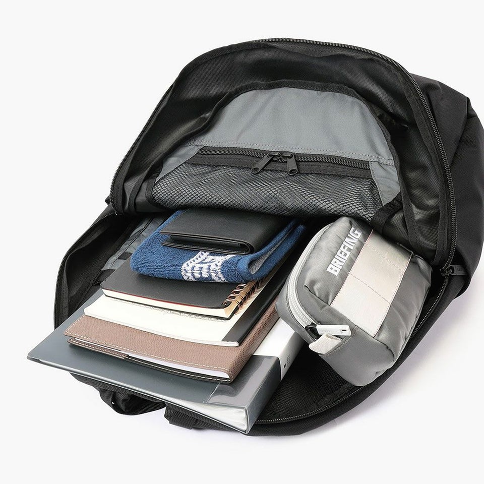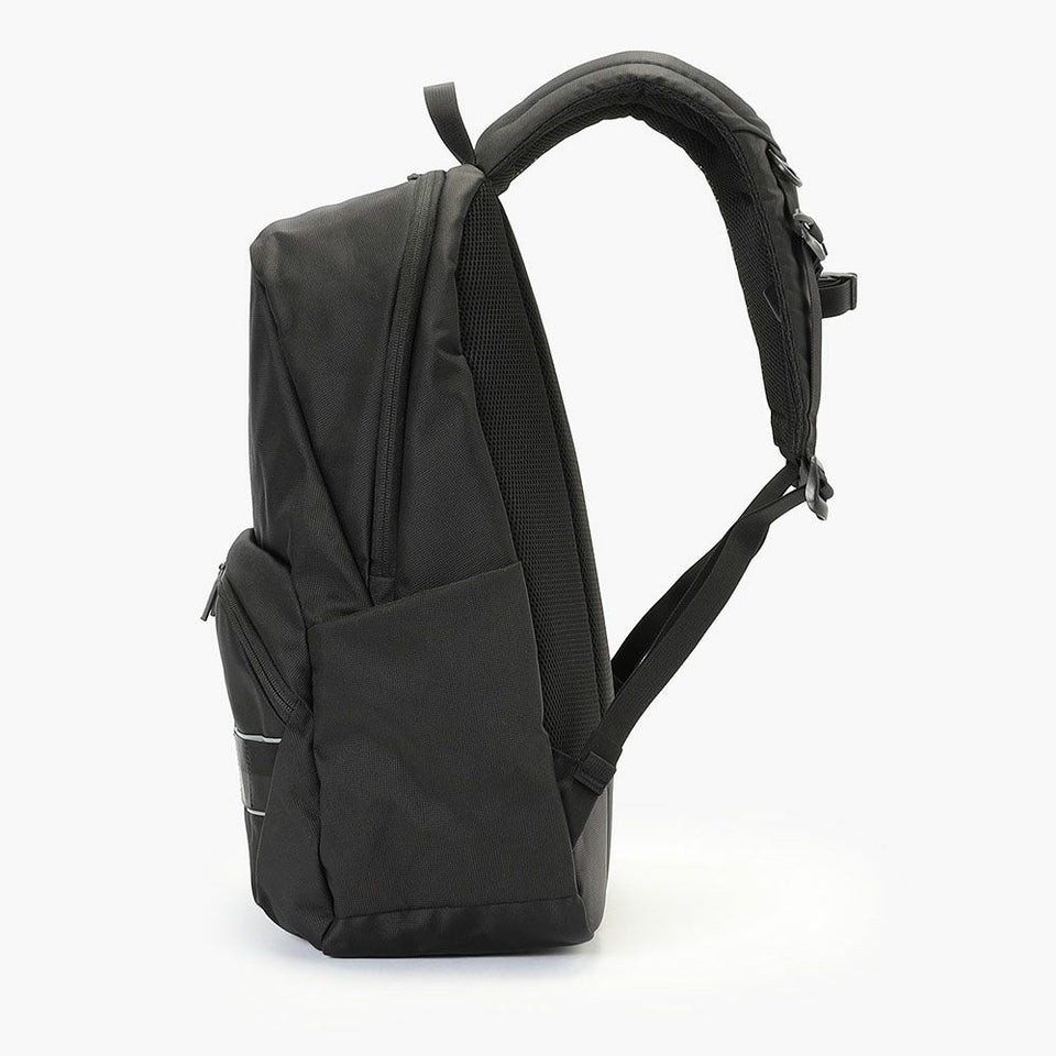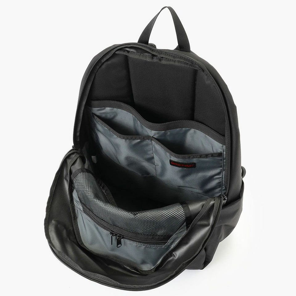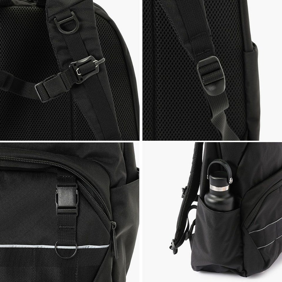 フロントポケットやサイドポケット、メッシュポケットなど、必要な物が取り出しやすい配置。普段使いから通勤まで快適に使える収納力。