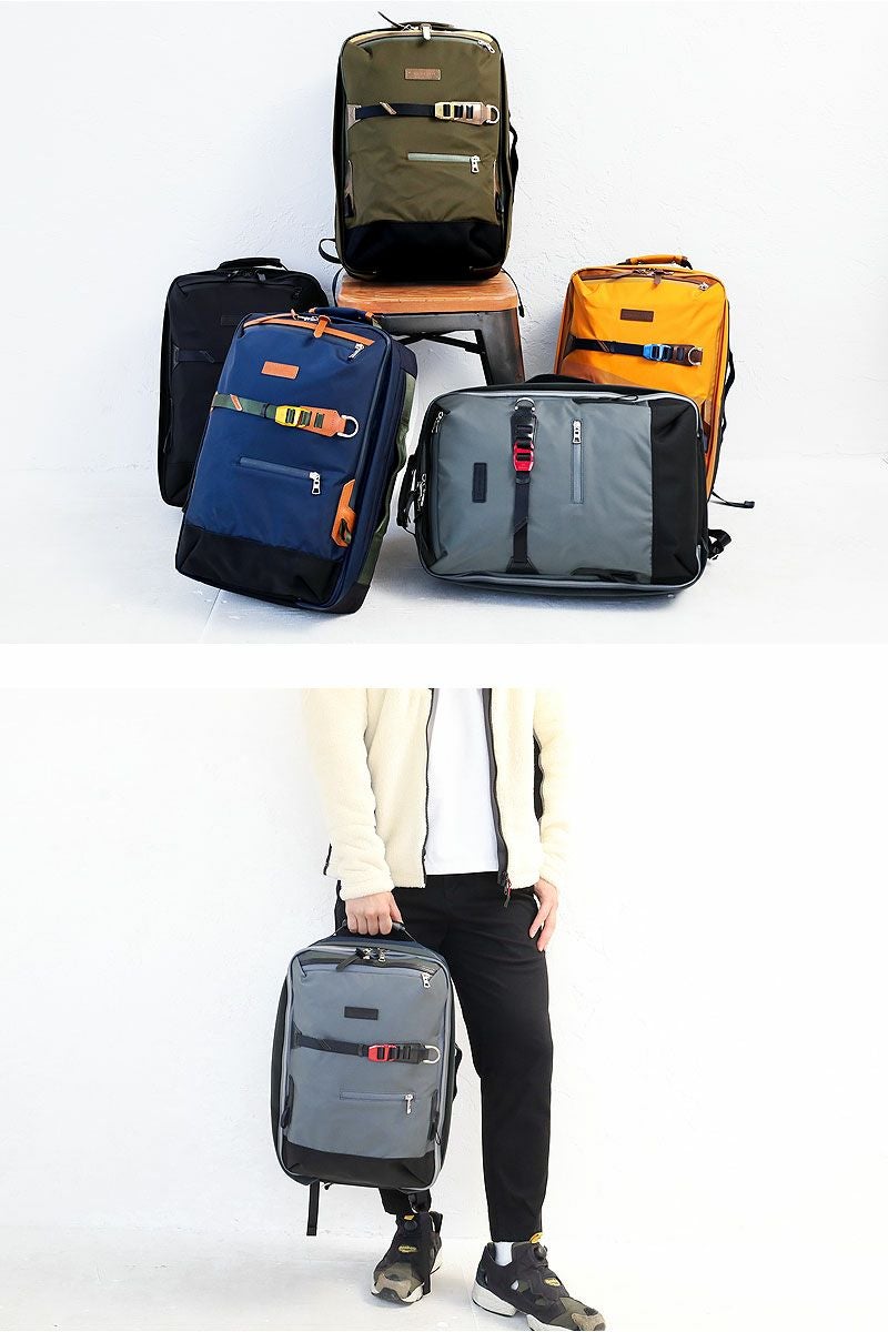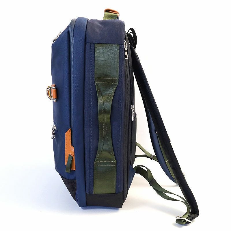 サイドにブリーフケースとして使えるハンドルが付いた2WAY仕様のバックパックです。