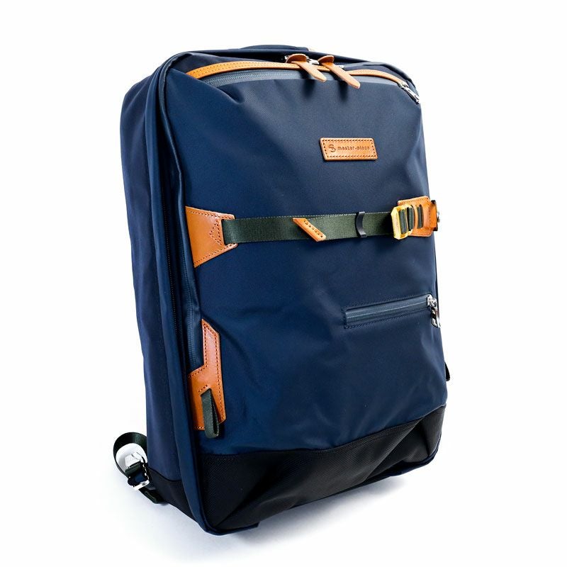 サイドにはブリーフケースとして使えるハンドルが付いた2WAY仕様のバックパックです。