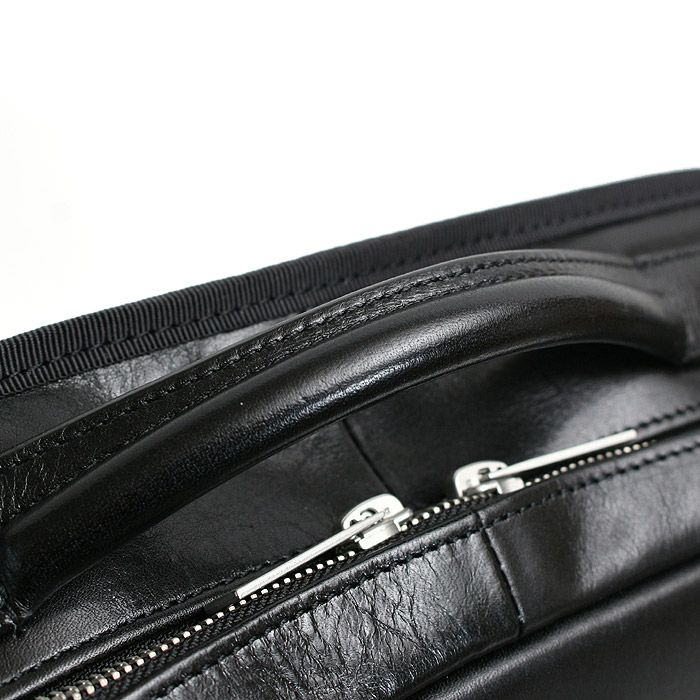 カバン本体に直接縫製することですっきりとシンプルに仕上げ、軽量化にも繋げています。