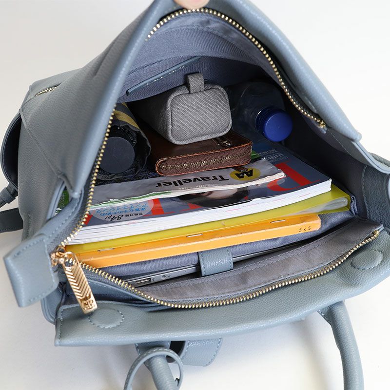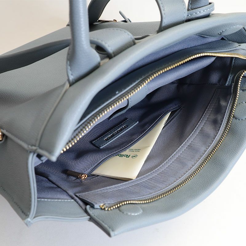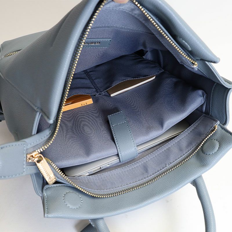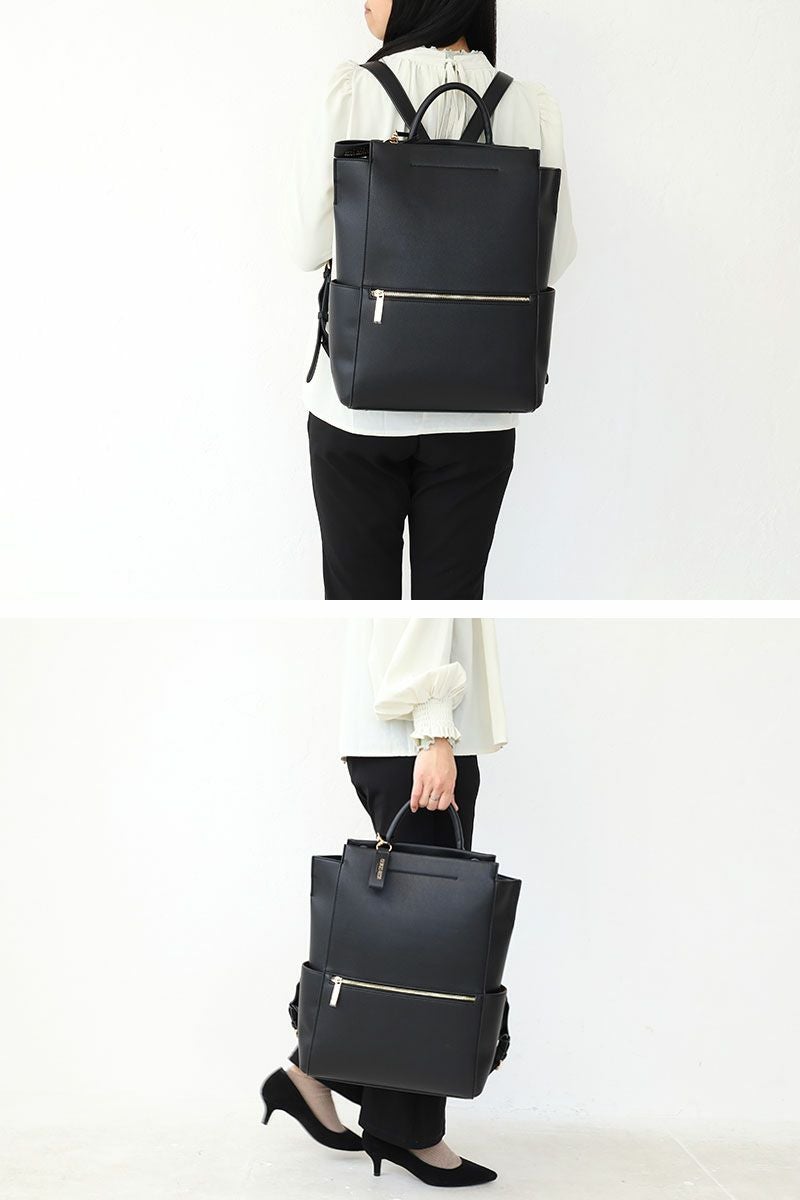 落ち着いた風合いと、PCポケット、キャリーハンドル通しベルトなどデザイン性と機能性を充実させたON/OFFシームレスな女性向けバッグ。