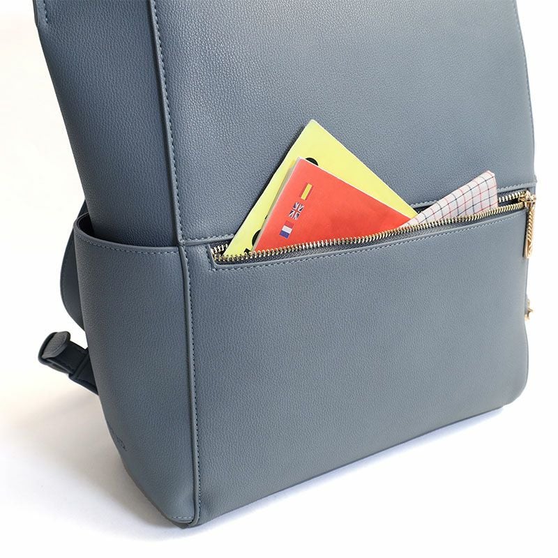 フロントには小物収納に便利なファスナーポケットが備わっています。