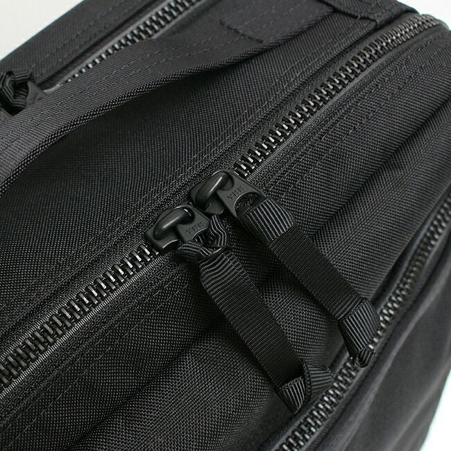 ファスナーには軽さと操作性の良さを重視しつつ、見た目は金属ファスナーのように見えるMETALUXE® Toughと呼ばれるYKKビスロンの高強度タイプを採用しました。ムシ(エレメント)の樹脂にガラスファイバーを練り込み、通常のビスロンファスナーより165%の高強度化、金属ファスナーより56%の軽量化を実現しています。