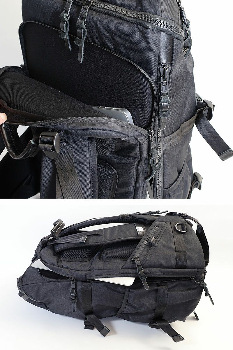 機能性抜群、小物類ポケットやタウンユースに欠かせないPC収納も完備。