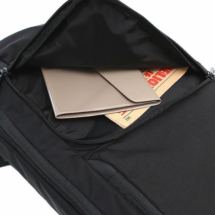 ・カバンを背負ったままで荷物の出し入れを可能とするL字型ジップを採用したフロントデザインが、ミニマムで都会的な雰囲気を演出。