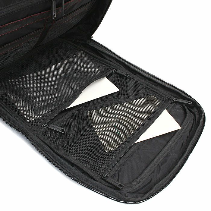 ケーブルやバッテリー、マウスなどごちゃごちゃしがちなアイテムの収納に配慮し、視認性に優れたメッシュポケットを多数搭載。