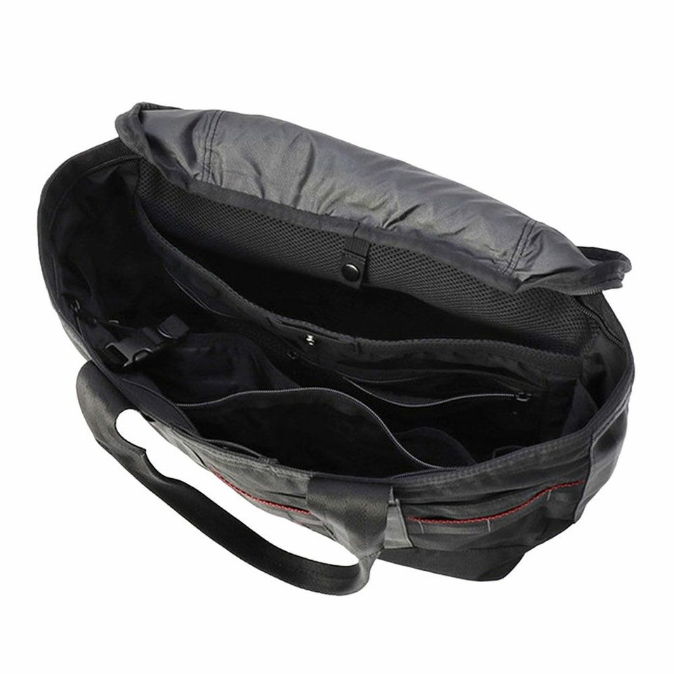 PCスリーブの近くに、ケーブルなどの収納に最適なメッシュポケットを配置するなど、関連する荷物がバラバラにならないように配慮。