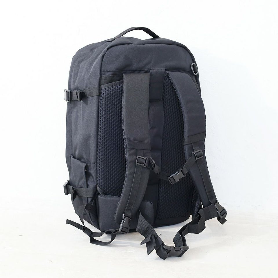 背面とショルダーハーネスに肉厚のクッションとメッシュ素材を採用。長時間背負っても疲れにくく、エアフローシステムにより通気性も確保。旅行や出張など長距離移動に最適な仕様です。