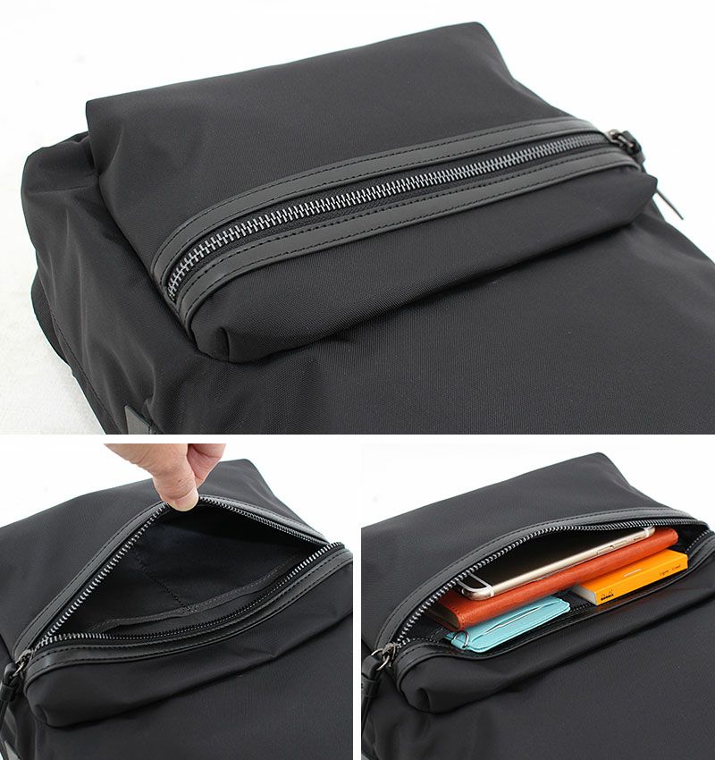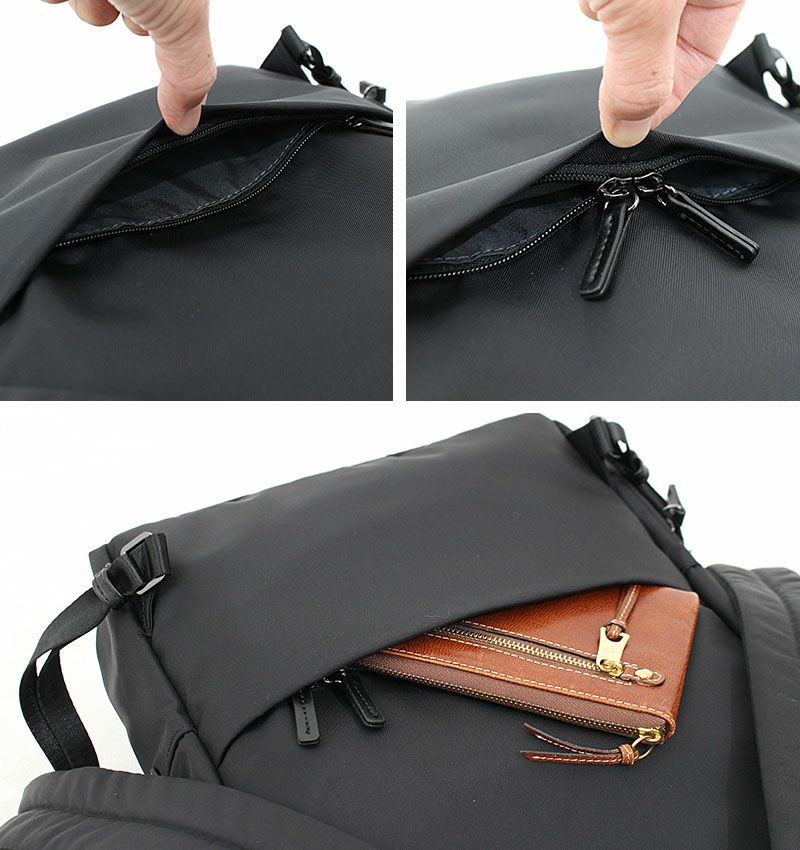 左右どちらからも出し入れしやすいセキュリティポケットがあります。