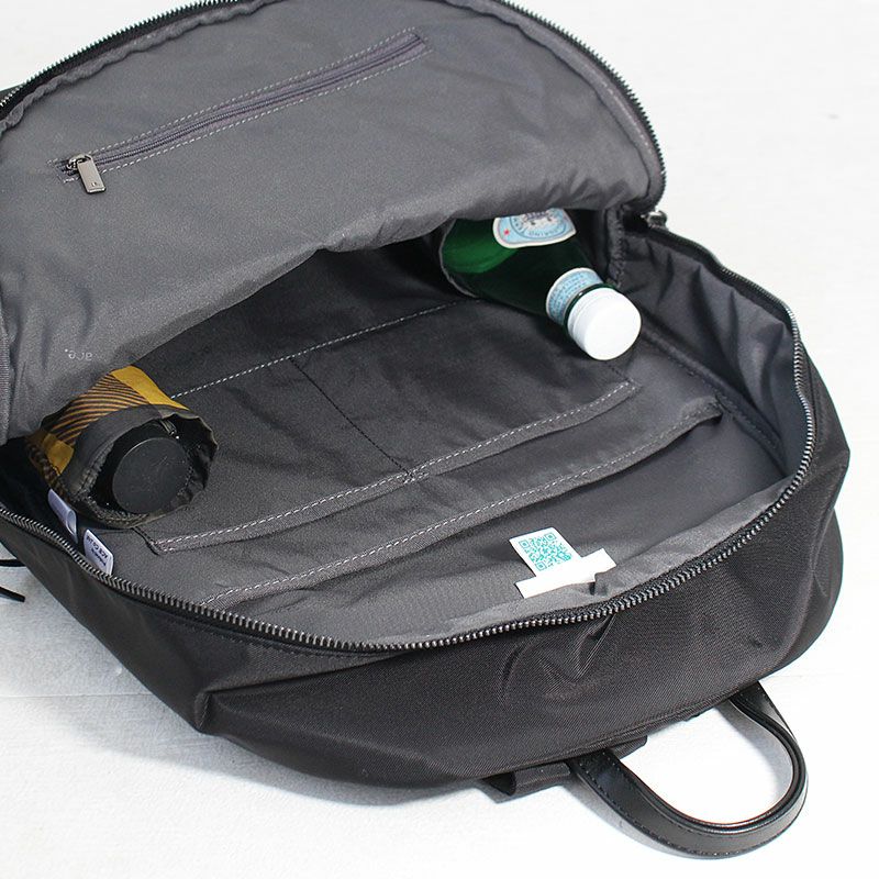 肩ベルト裏側のクッションやPC収納といった機能性だけでなく、高まる環境意識にも対応する為、本体生地にリサイクル素材を使用しています。