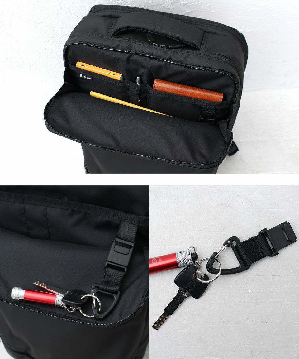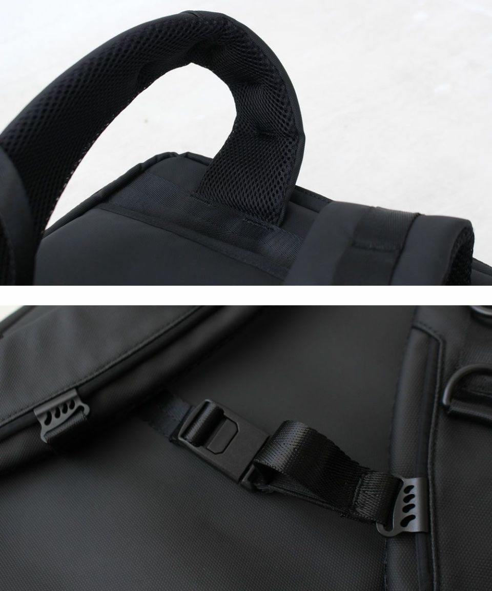 メイン収納に加え、パソコンや折り畳み傘などあらゆる必需品のサイズに想定された収納ポケットが多数あり、 スムーズなアクセスと出し入れが可能。