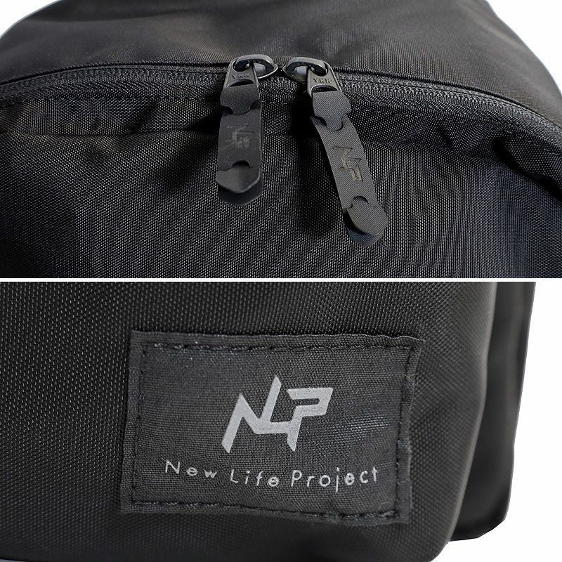 本体、ファスナー引手など各所にNLPのロゴが入っています。