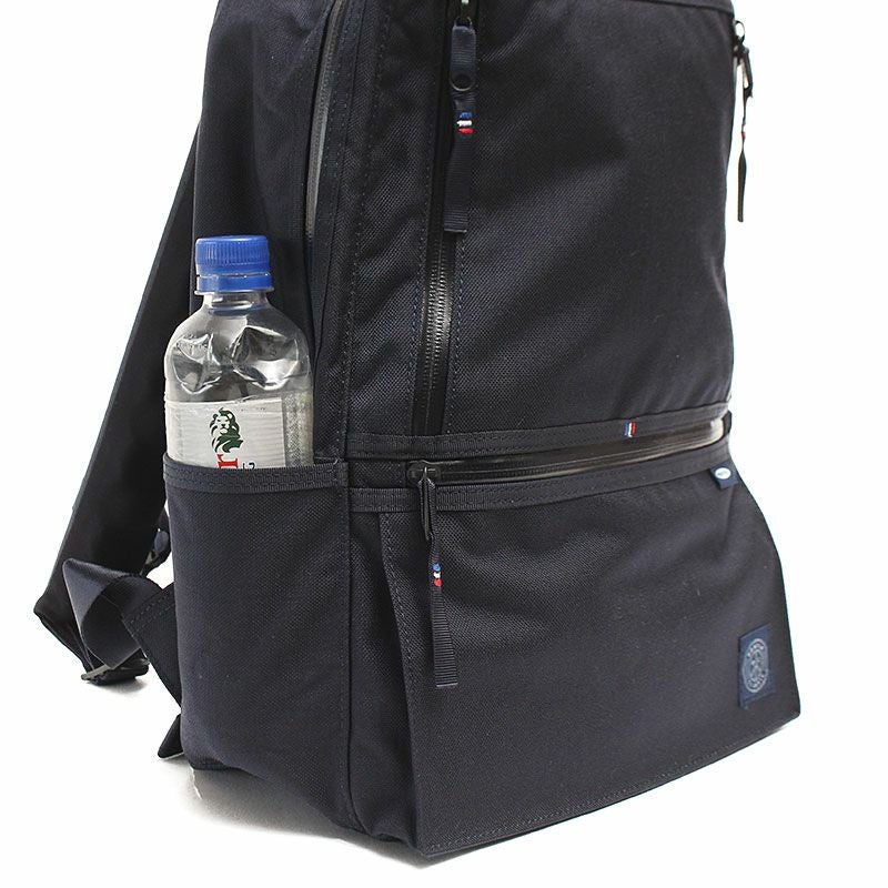両サイドにはペットボトル、携帯電話、折り畳み傘などが収納できるポケットがあります。