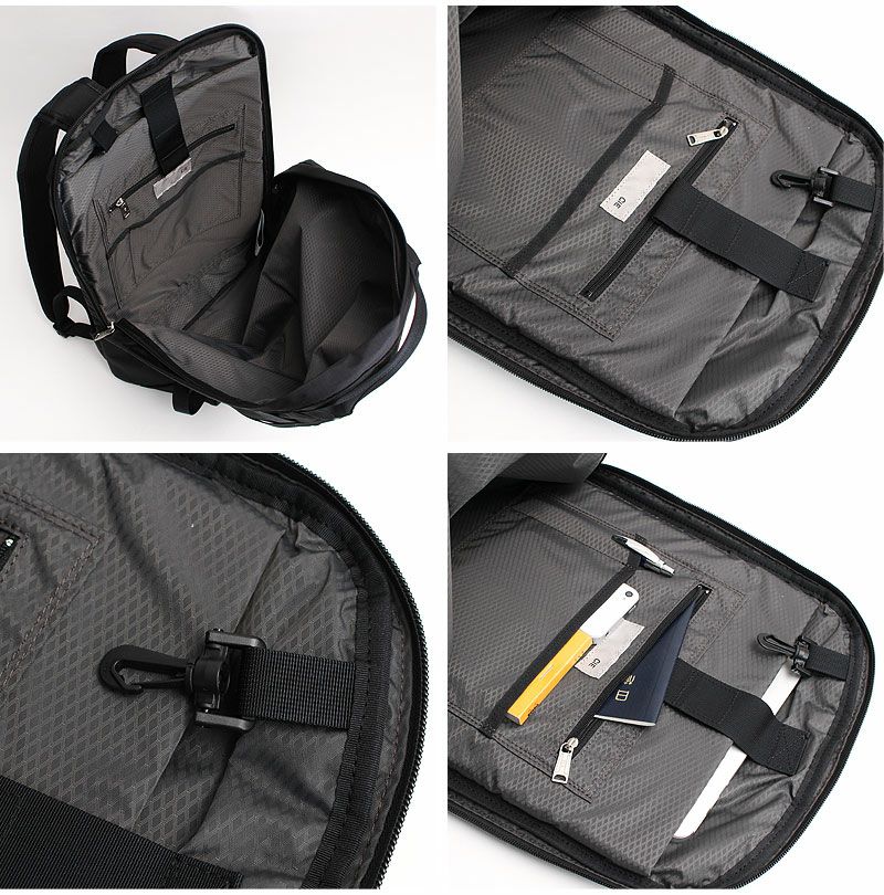 内装はPC収納に便利なクッションポケットを始め、ペンホルダーなど小物の整理に便利なポケットが備えられています。さらに鍵などをかけておくためのキーフックがついており、機能性・収納性は抜群です。
