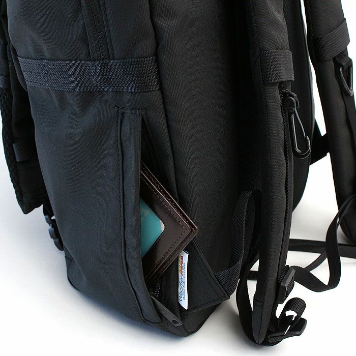 背面とサイドそれぞれ1ヵ所ずつファスナーポケットが設けられています。