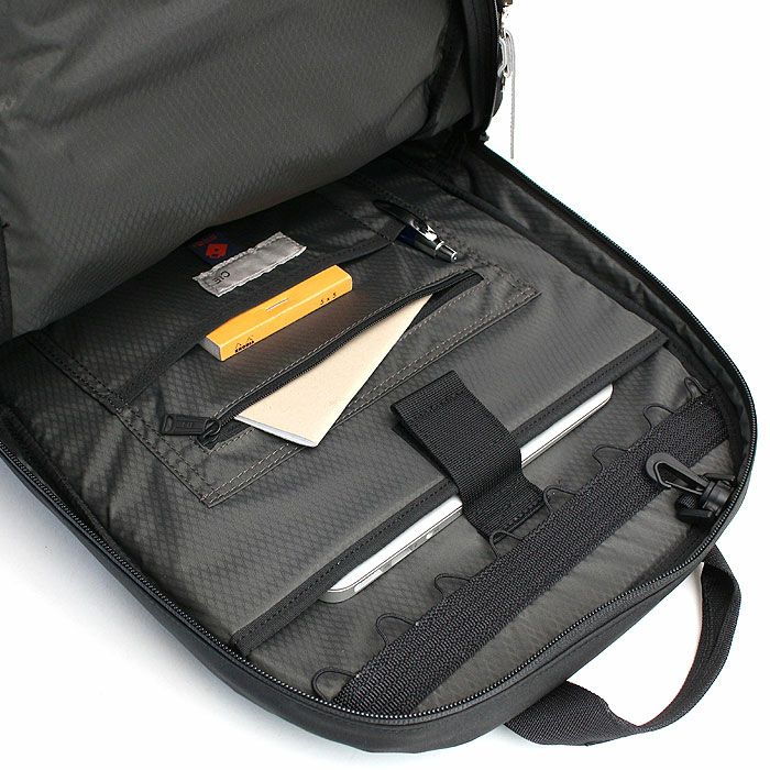 B4サイズの書類や11インチのPCなどの他にも、キーフックやファスナーポケット、オープンポケット、ペンホルダーなど小物の整理に便利なポケットが備えられており、ビジネスシーンでも活躍します。