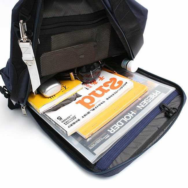 メイン収納はB4サイズ対応。PC収納可能なポケットも備わっています。