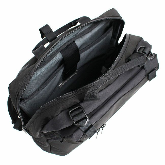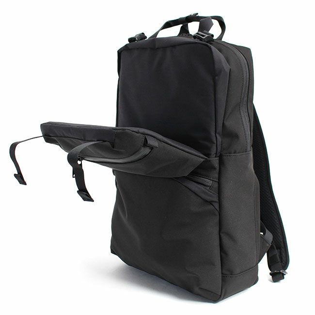 バックパックの上部は本体の容量に併せてマチ幅を可変できるギミックを搭載しております。