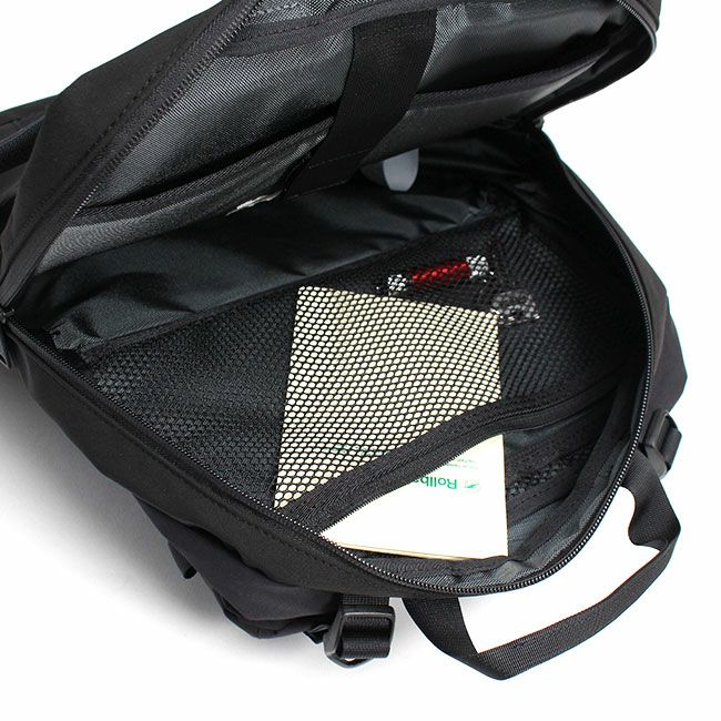 フロント側にはメッシュファスナーポケットがあり小物収納に便利です。