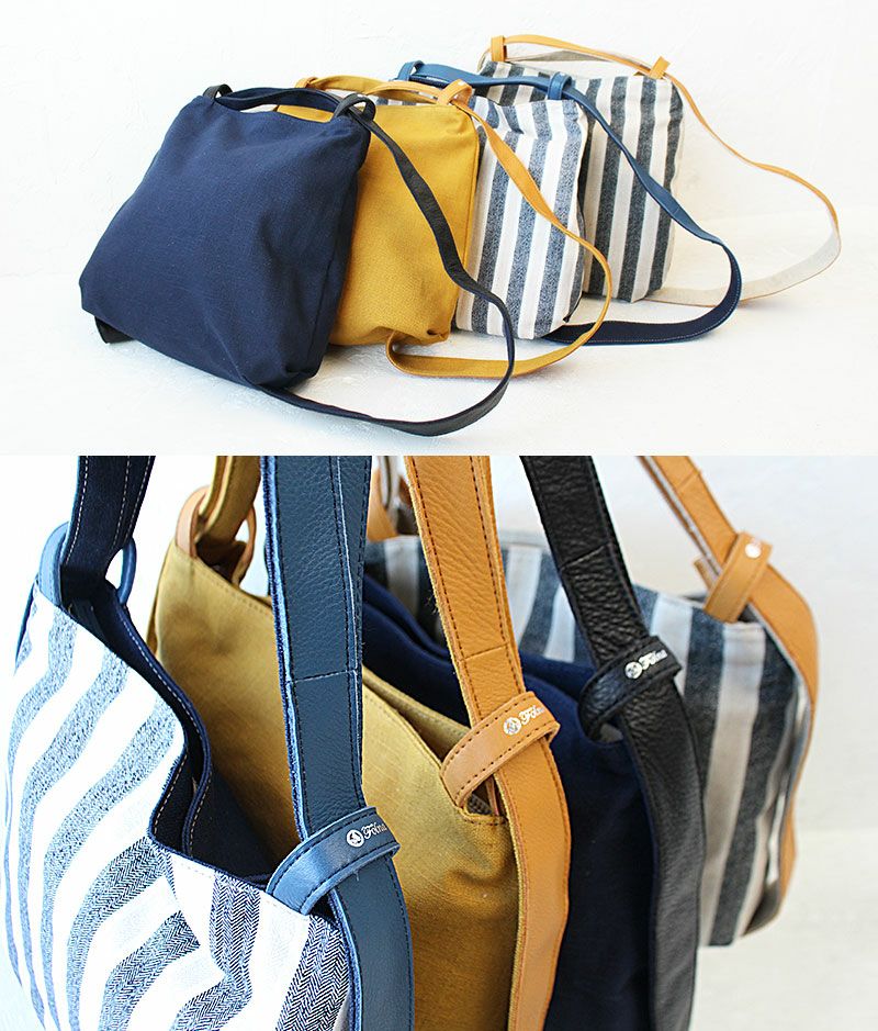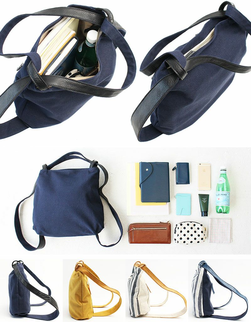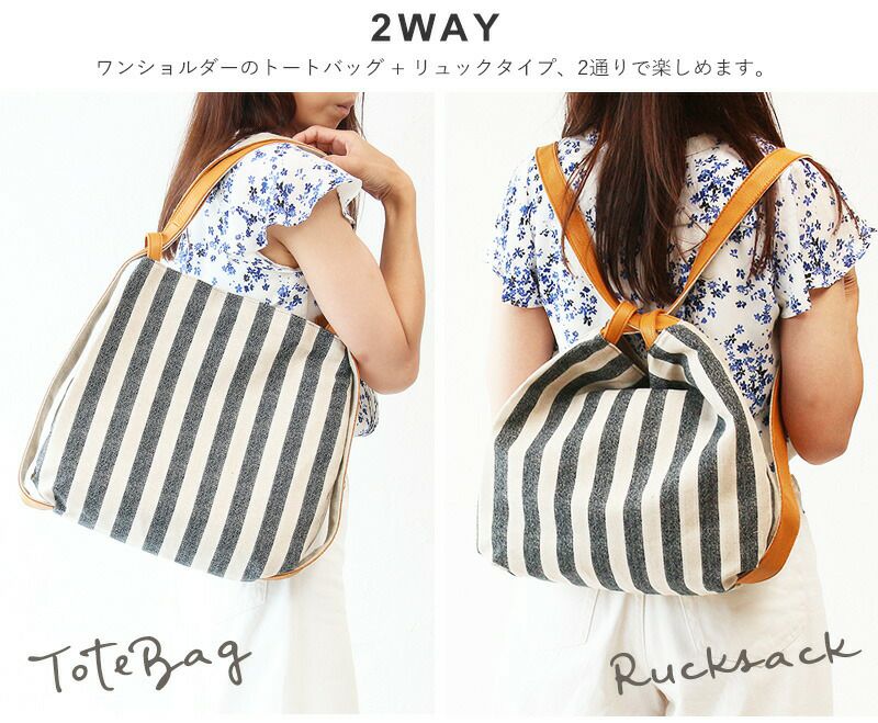 ワンショルダーのトートバッグから、リュックタイプにもなる2wayバッグです。
