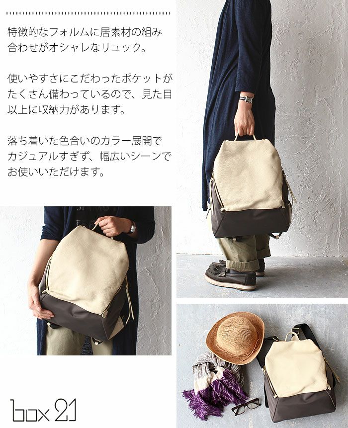 祝日も発送! box21 ボックス21 牛革×ナイロンの上品なリュック リュックサック 送料無料