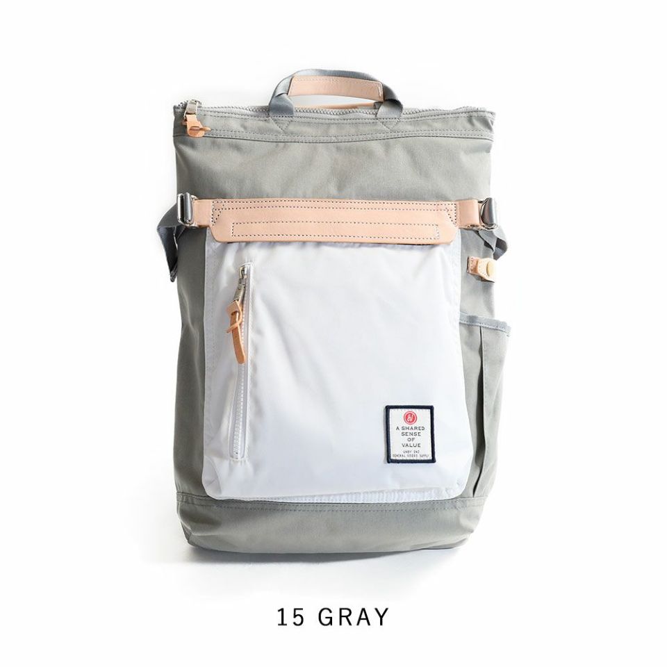 前面のレザーのワンポイントが印象的なバックパック・手持ちの2WAYのバックパック。