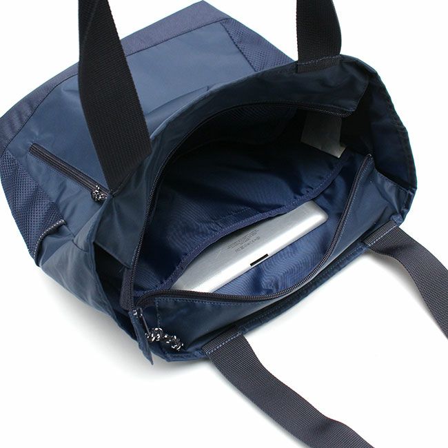 フロントにファスナーポケット、両サイドにはメッシュポケットを装備。収納部はB4サイズ対応で安心のファスナー開閉になっています。
