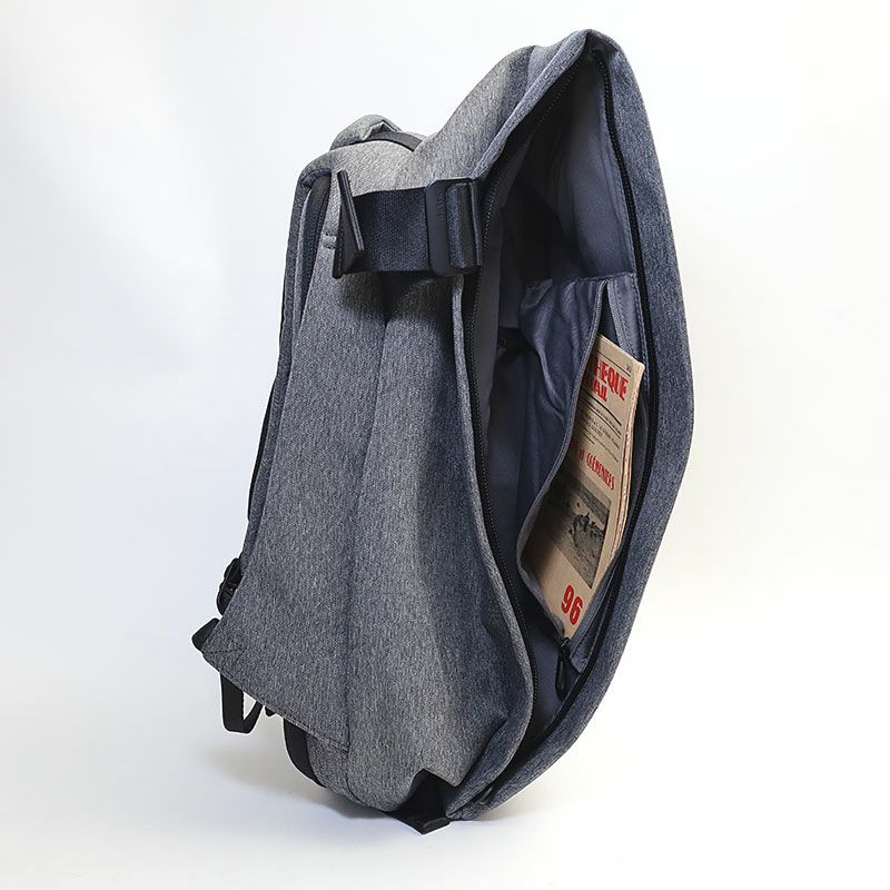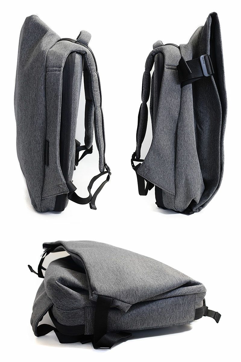 建築的な曲線美を活かした独特なフォルムのバックパック。
