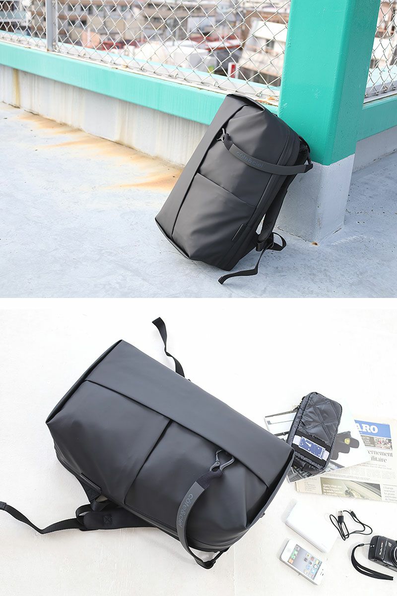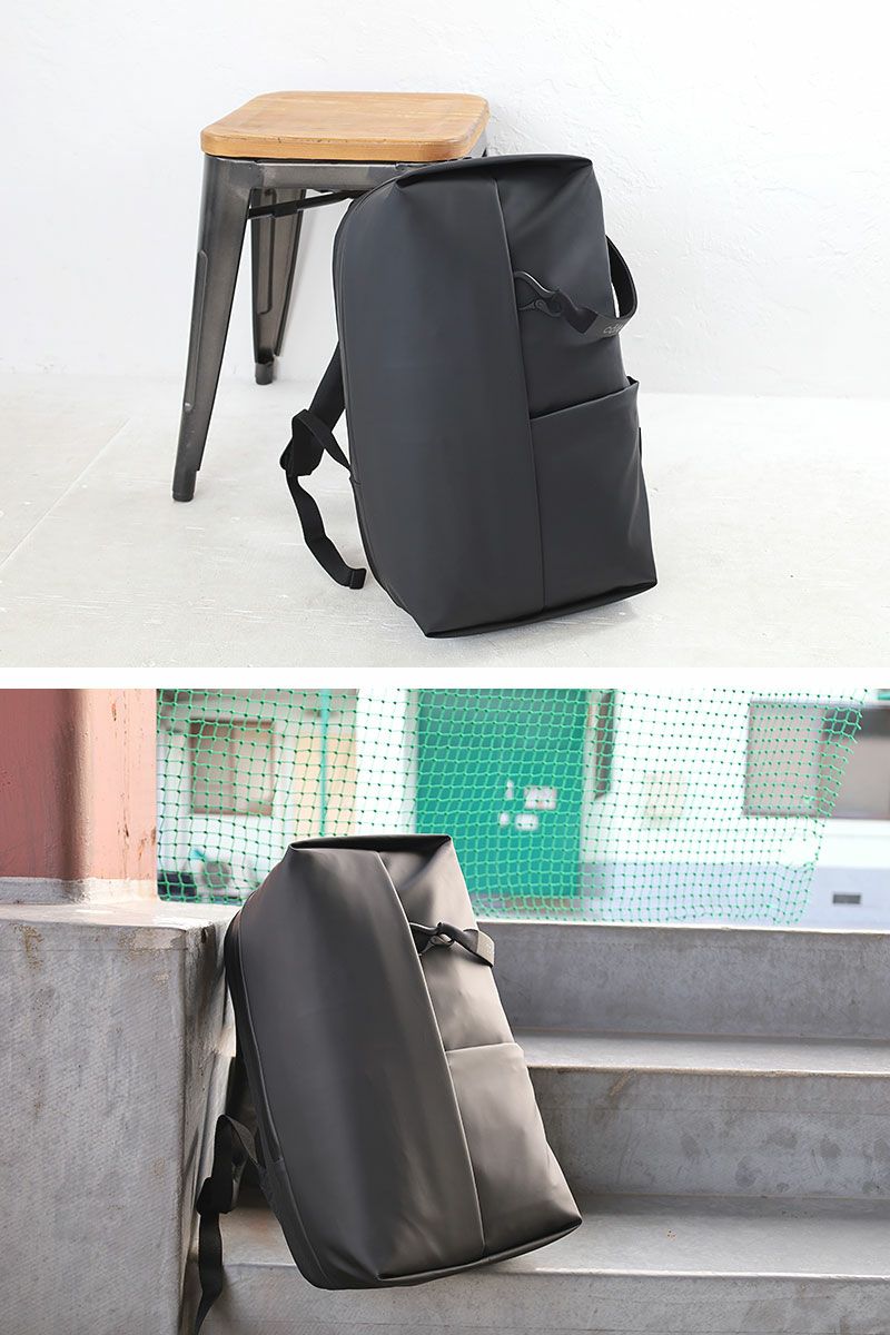 素材: | Obsidian ポリエステル素材にPU加工を施した艶感のある生地。 フェイクレザーと呼ばれる事もあり、フォーマルにも適した防水素材。 また弾力性と柔軟性に富み、且つ軽量。