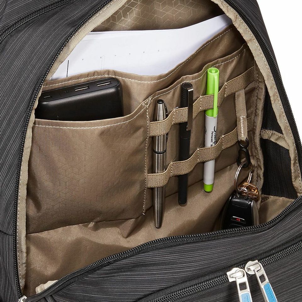 最大15.6インチのノートパソコンや10.5インチのタブレットを収納できる、ソフト裏地付きのパッド入り専用コンパートメントを装備。移動中も安心して持ち運べます。