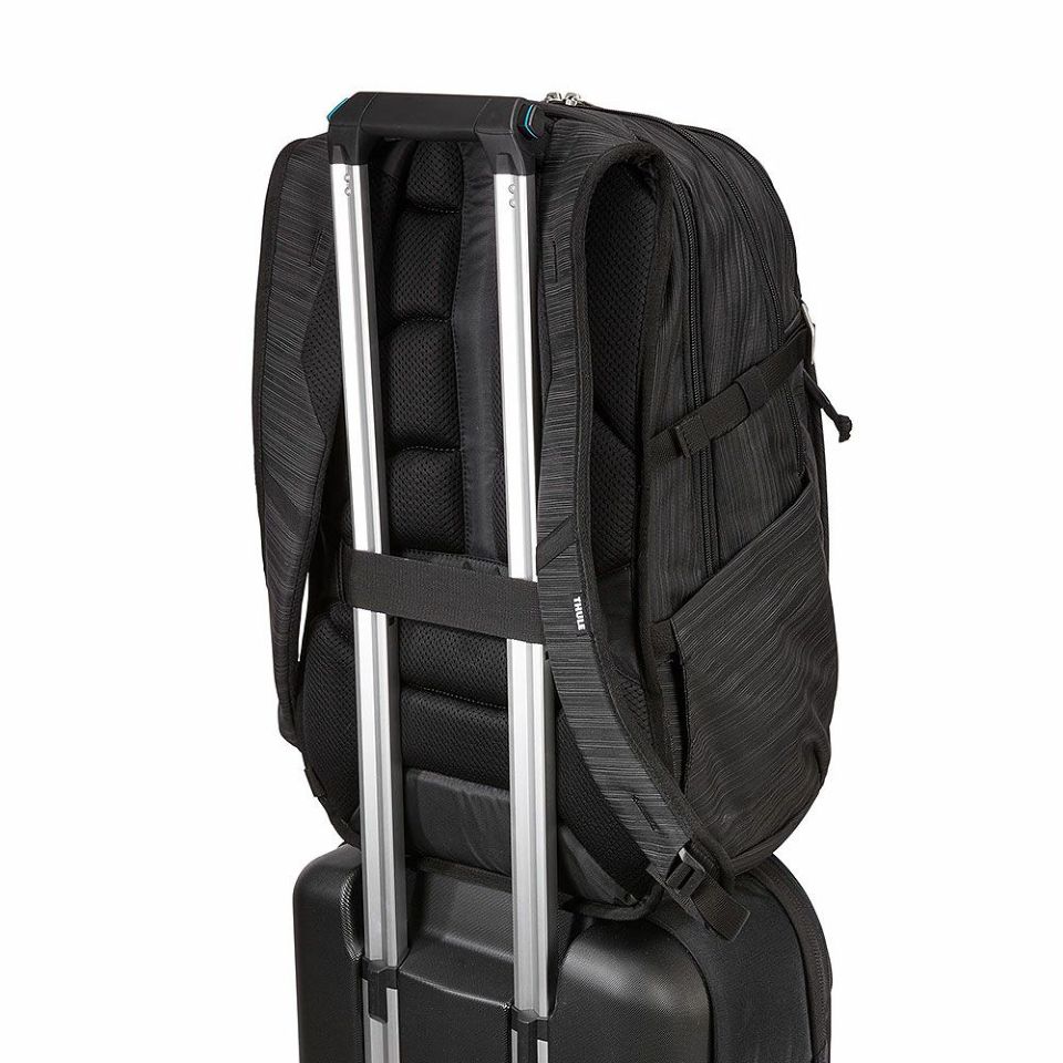 背面にはスーツケースのハンドルに通せるパススルーベルト付き。空港での移動も快適にサポートします。