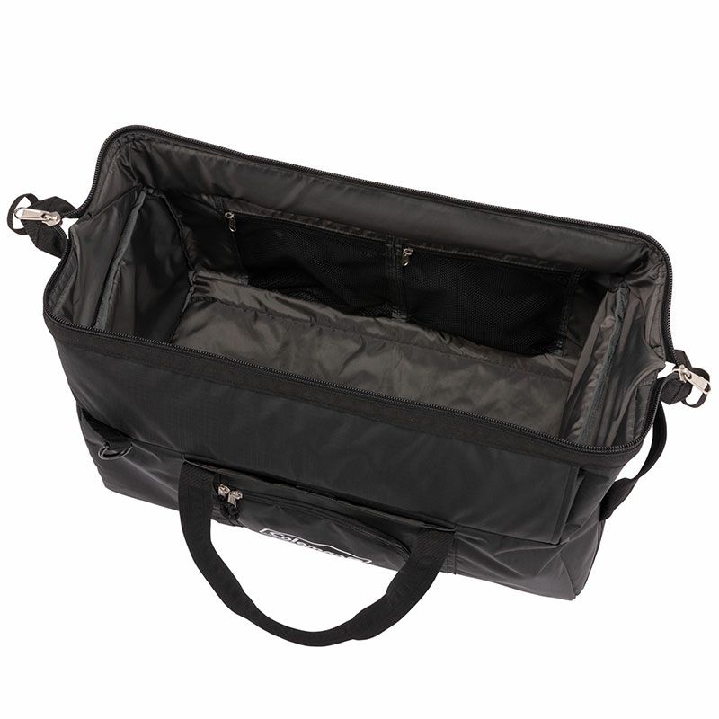 3-4箔の旅行にも対応可能な50L容量のボストンバッグ。開口部はダブルファスナー式の口金タイプで大きく開き、中の荷物が見えやすく取り出しやすい仕様です。
