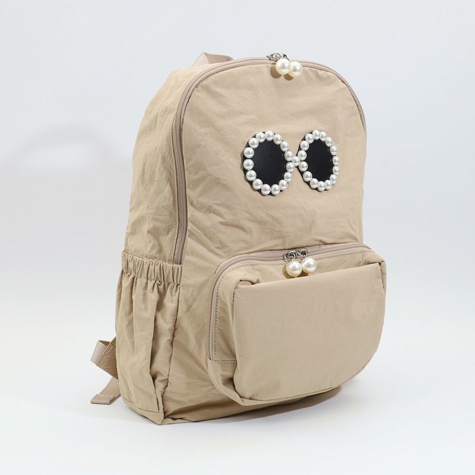 a-jolieのアイコンでもある“パールで縁取られたサングラス”がリュックになって登場。ユニークでキュートなフェイスデザインは、持つだけで気分が上がる存在感です。