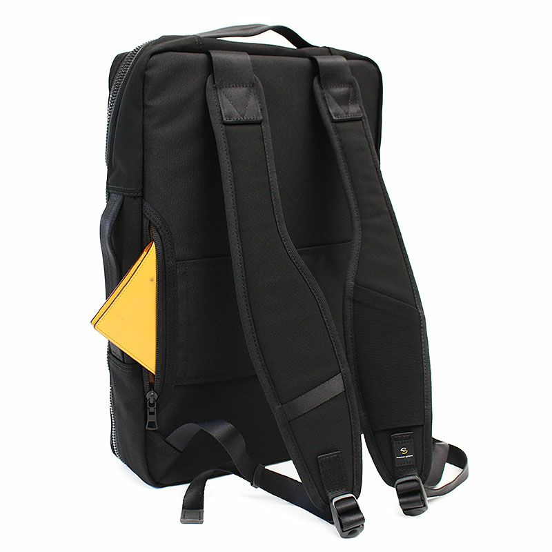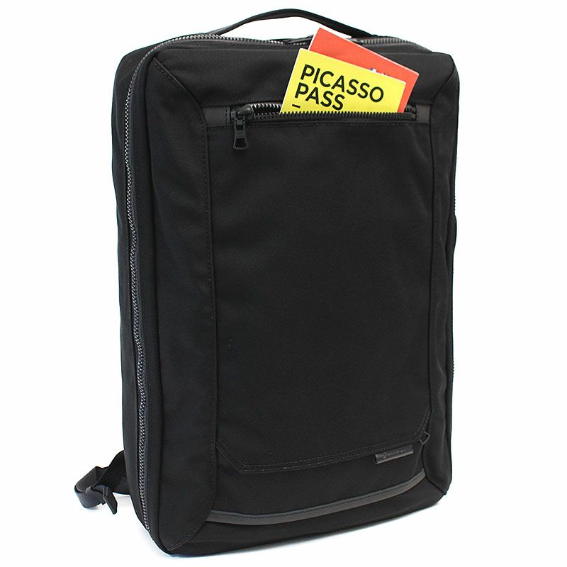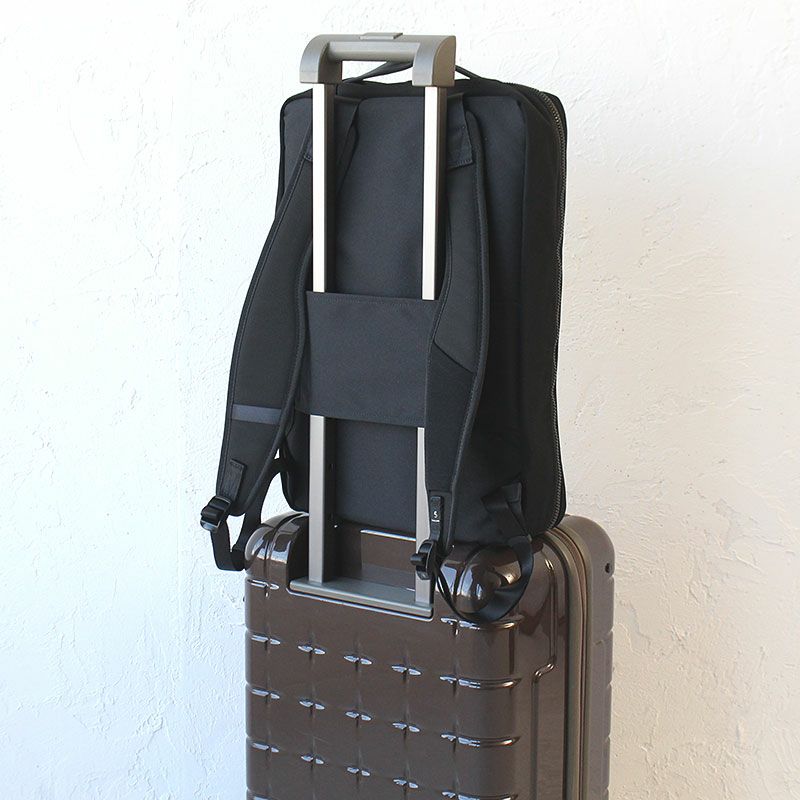 キャリーケースにも取り付けることができ、ビジネスバッグとして使いやすいバックパックです。