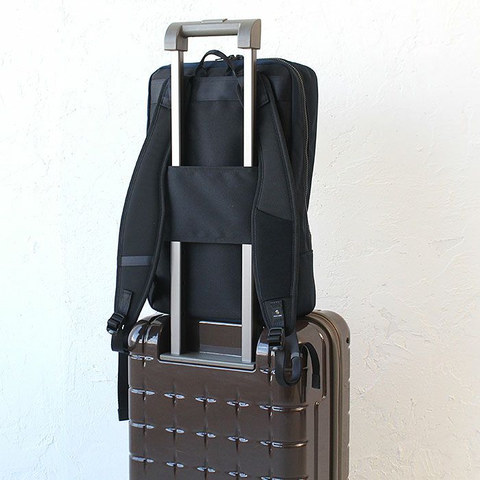 キャリーケースにも取り付けることができ、ビジネスバッグとして使いやすいバックパックです。