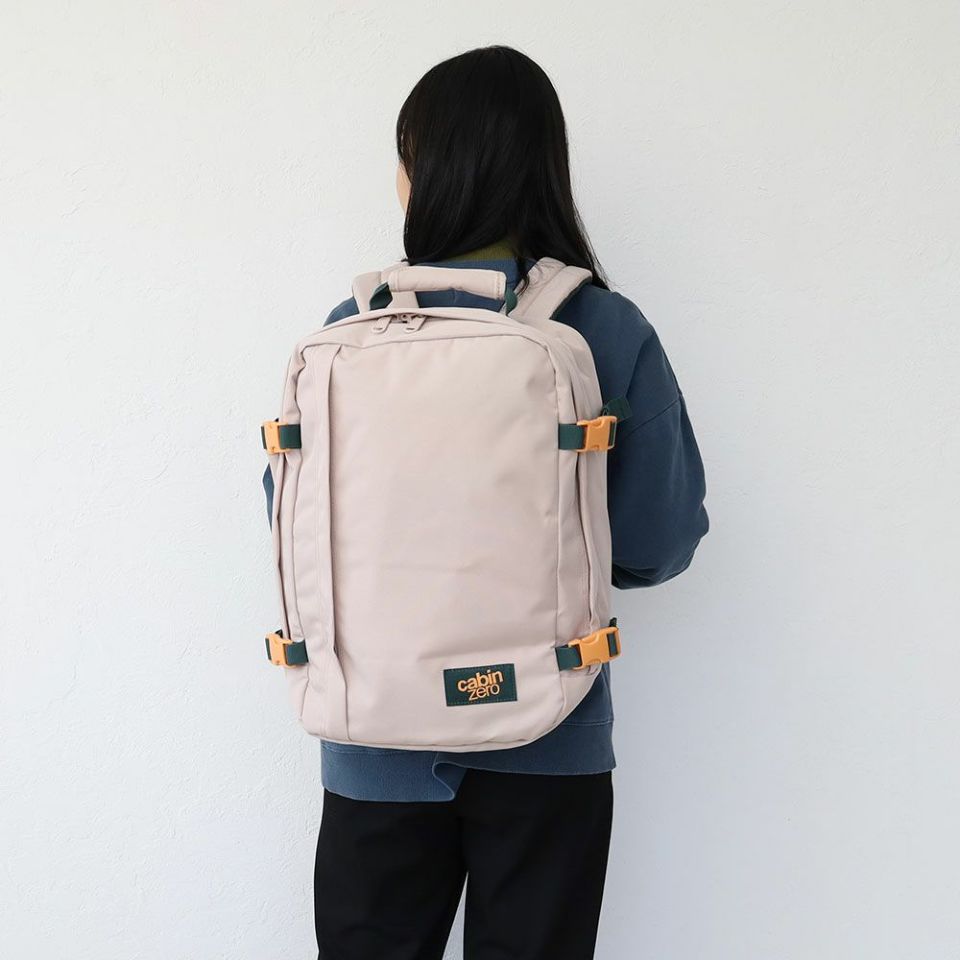 CABIN ZEROのラインナップの中で常に人気があるのが「CLASSIC」です。飛行機の機内持ち込みや電車の座席の下、車のトランクなど、旅の移動中のあらゆるシーンで収まりがよく、旅のストレスを考慮して作られたCABIN ZEROの原点でありシンボルとも言えるバックパックです。CLASSICのフロントはスッキリとした印象で、ロゴもモダンなスタイルでトラベルだけでなくビジネスなどでも使いやすいようブラッシュアップされています。軽量性やフラットでシンプルなデザインが馴染む、国内旅行や日々の通勤通学を視野に検討している方や、初めてCABIN ZEROを手に取る方におすすめです。