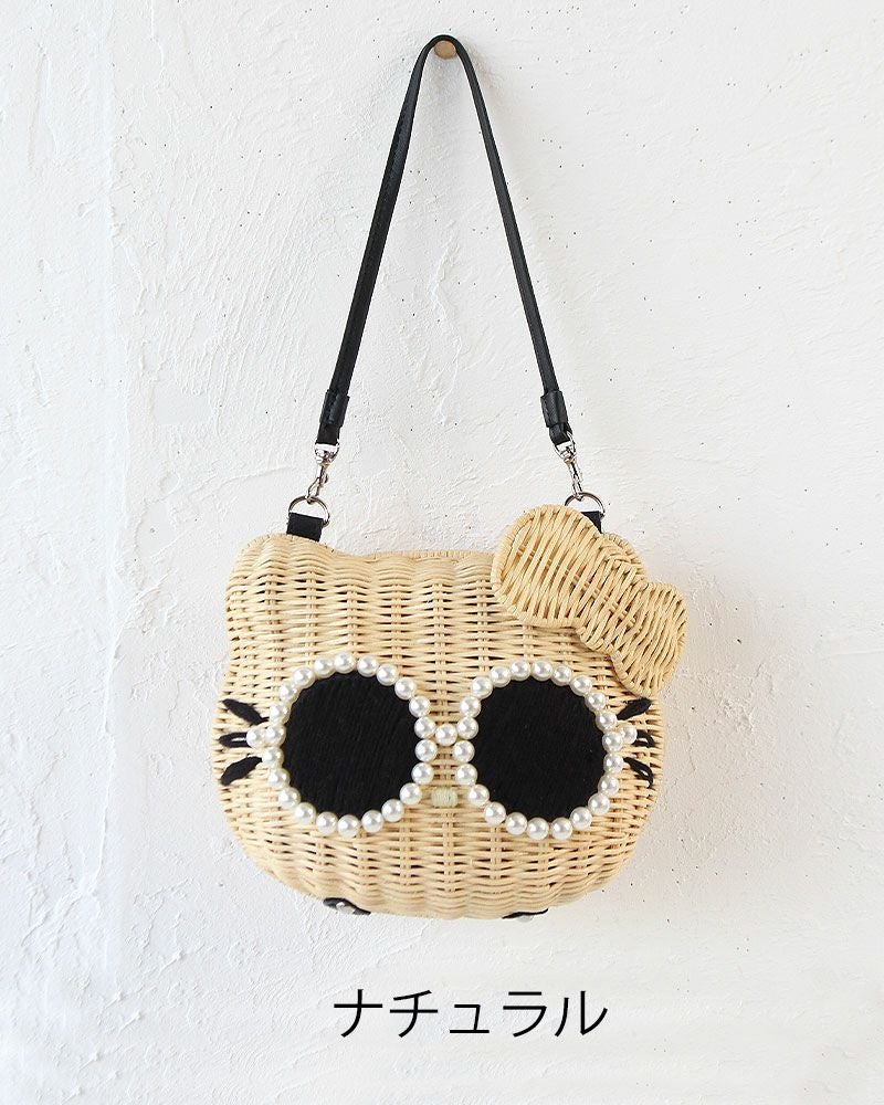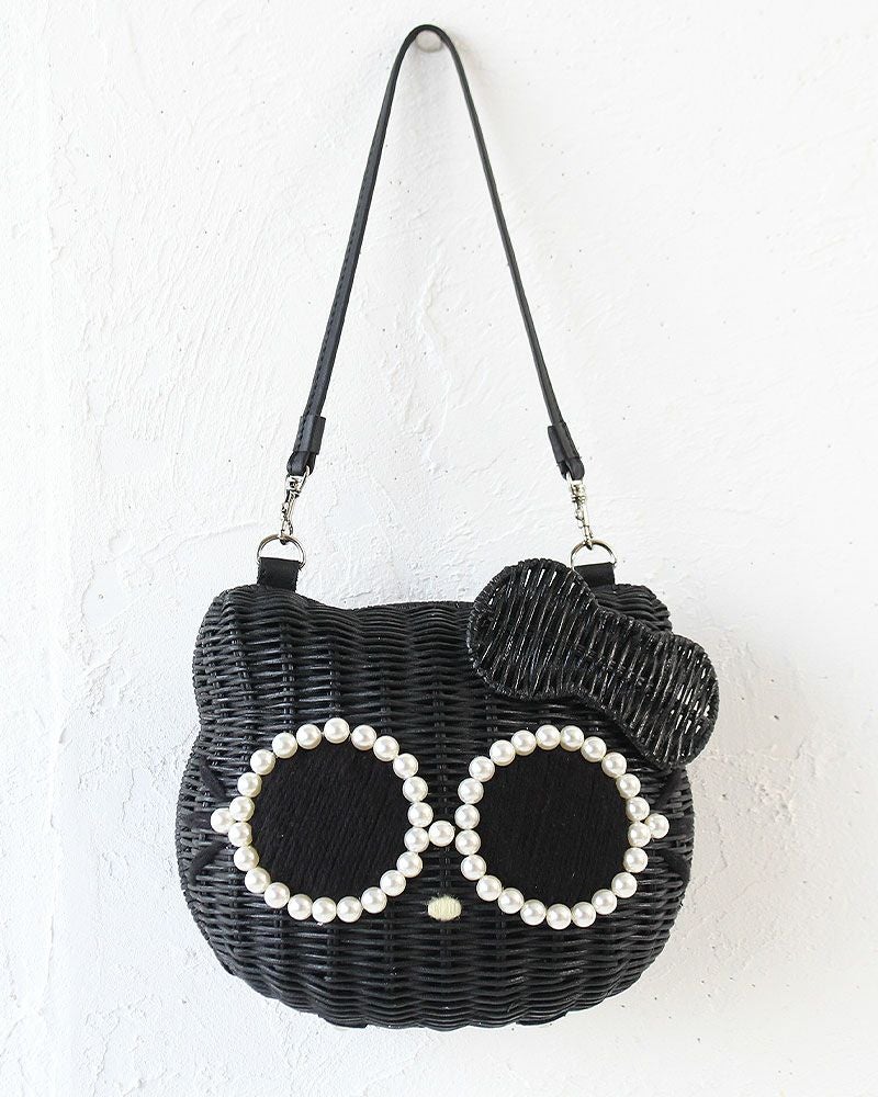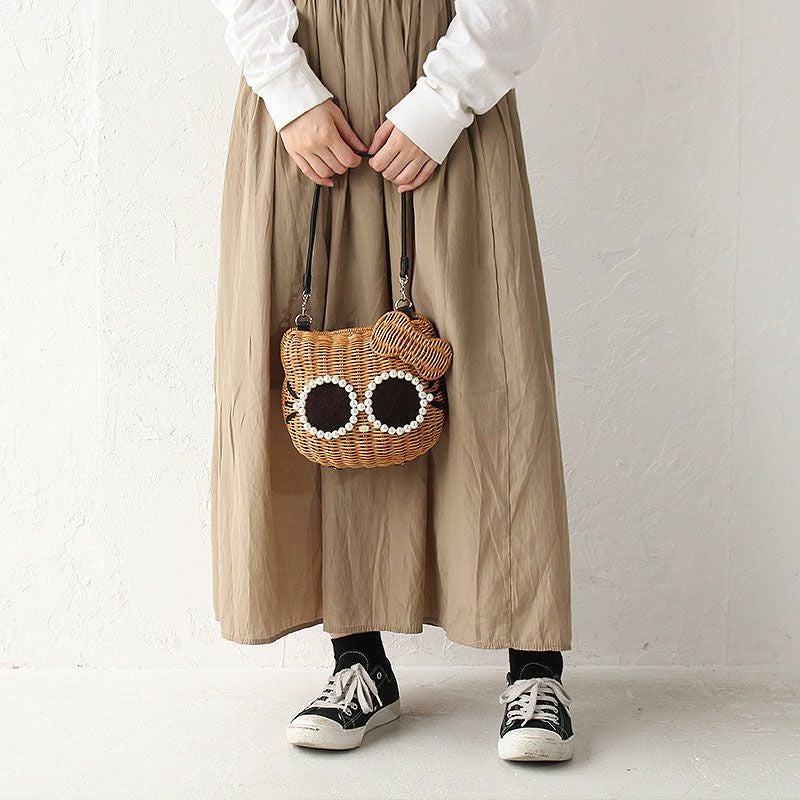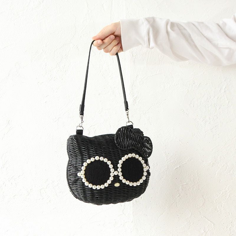 キティちゃんの立体的なシルエットに、アジョリーらしいサングラスパールを組み合わせたカゴバッグです。