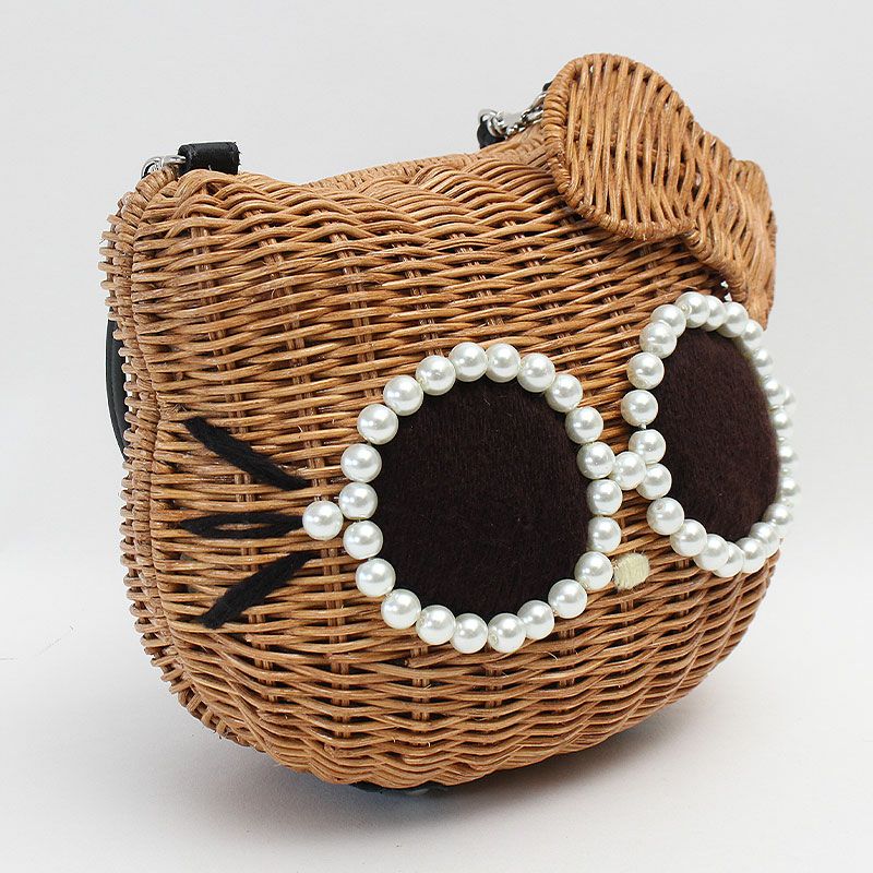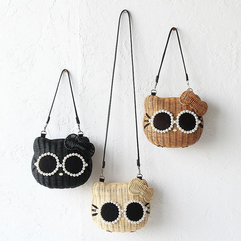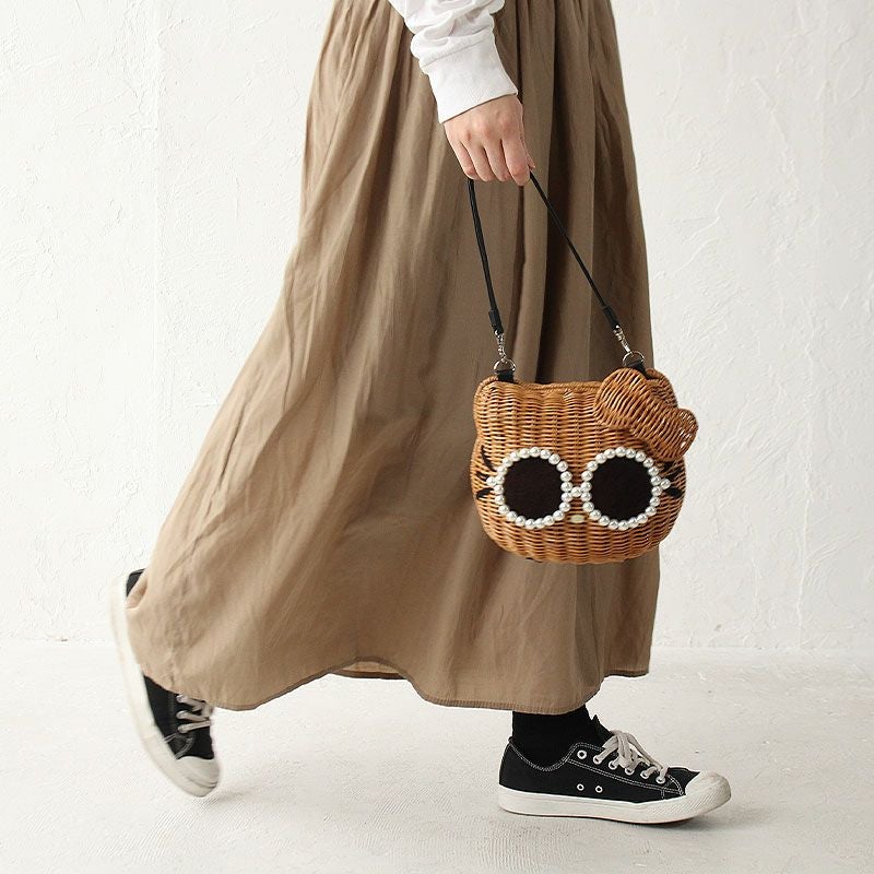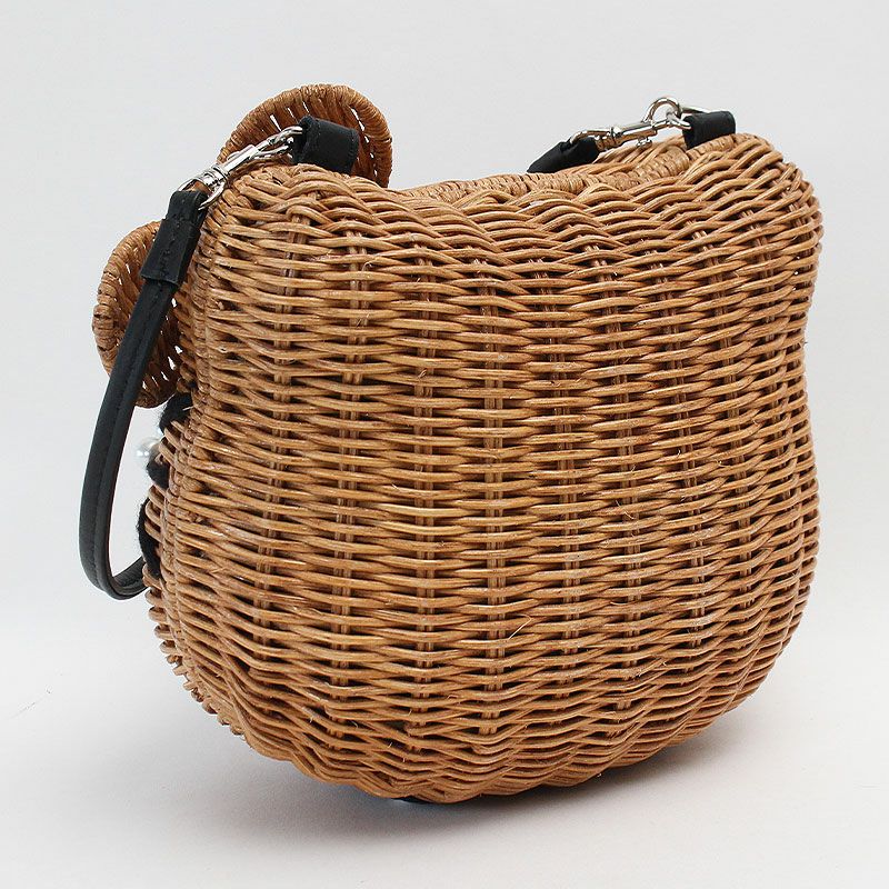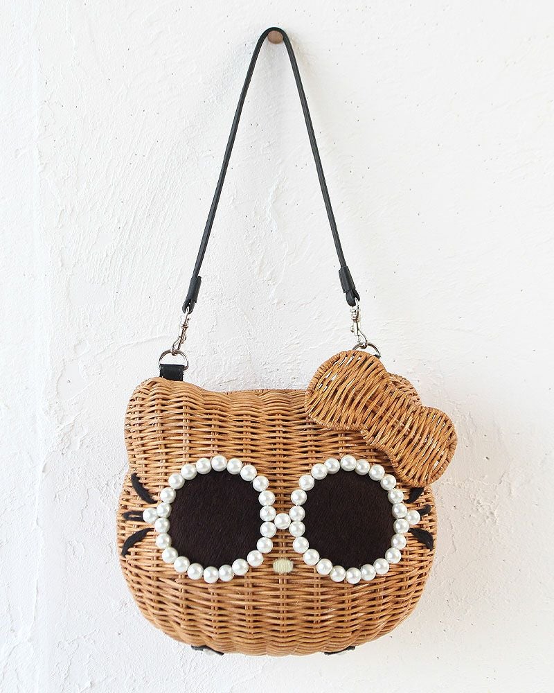 キティちゃんの立体的なシルエットに、アジョリーらしいサングラスパールを組み合わせたカゴバッグです。