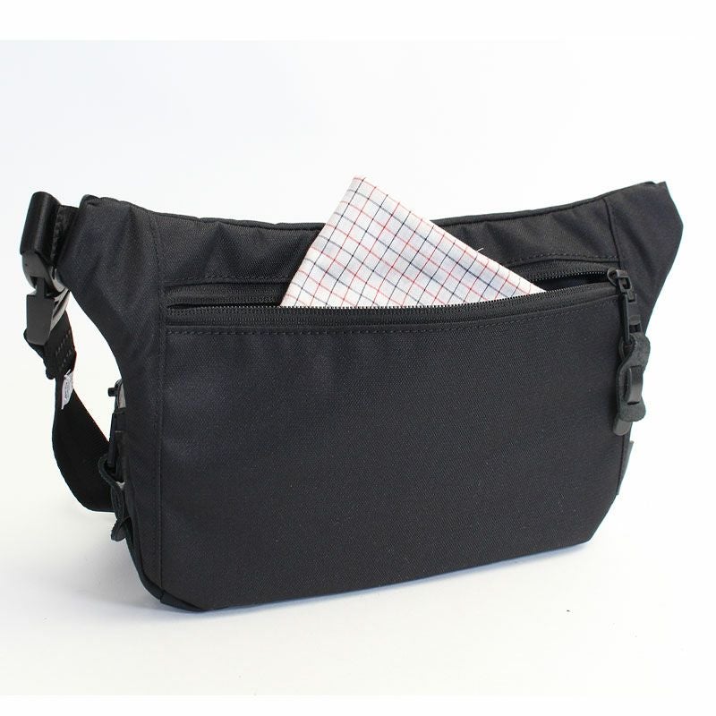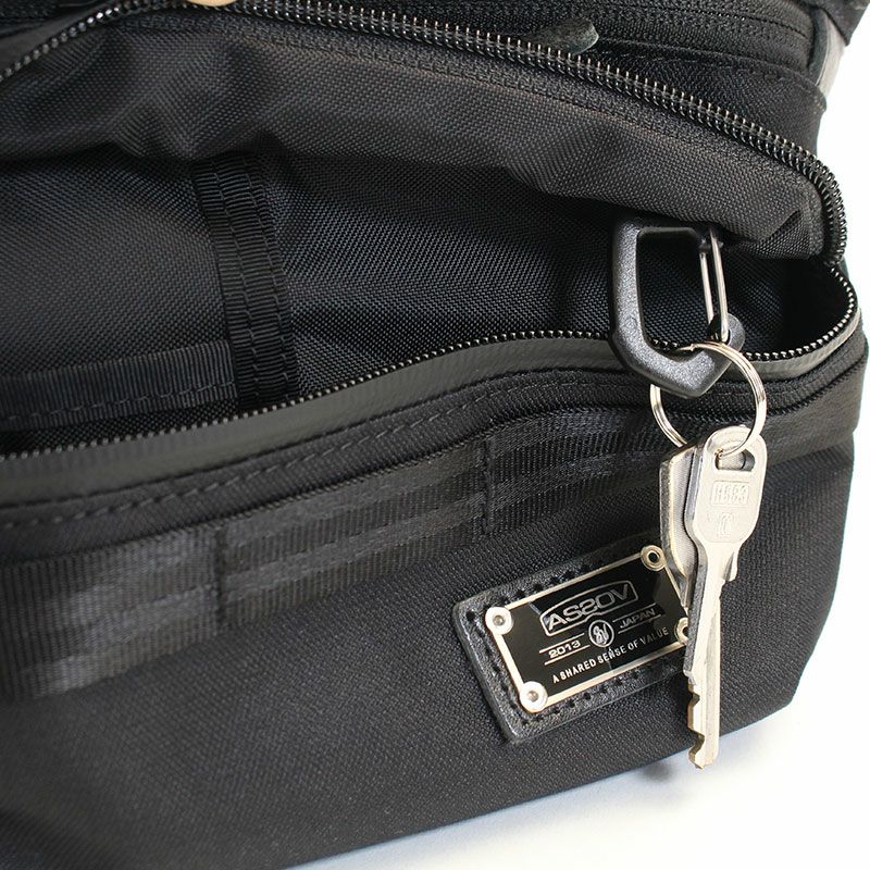 見た目はスタイリッシュですが、前面ポケットにはカードを専用で収納できる箇所があったり、カラビナが隠れていたりと、機能性の高さも備わっています。