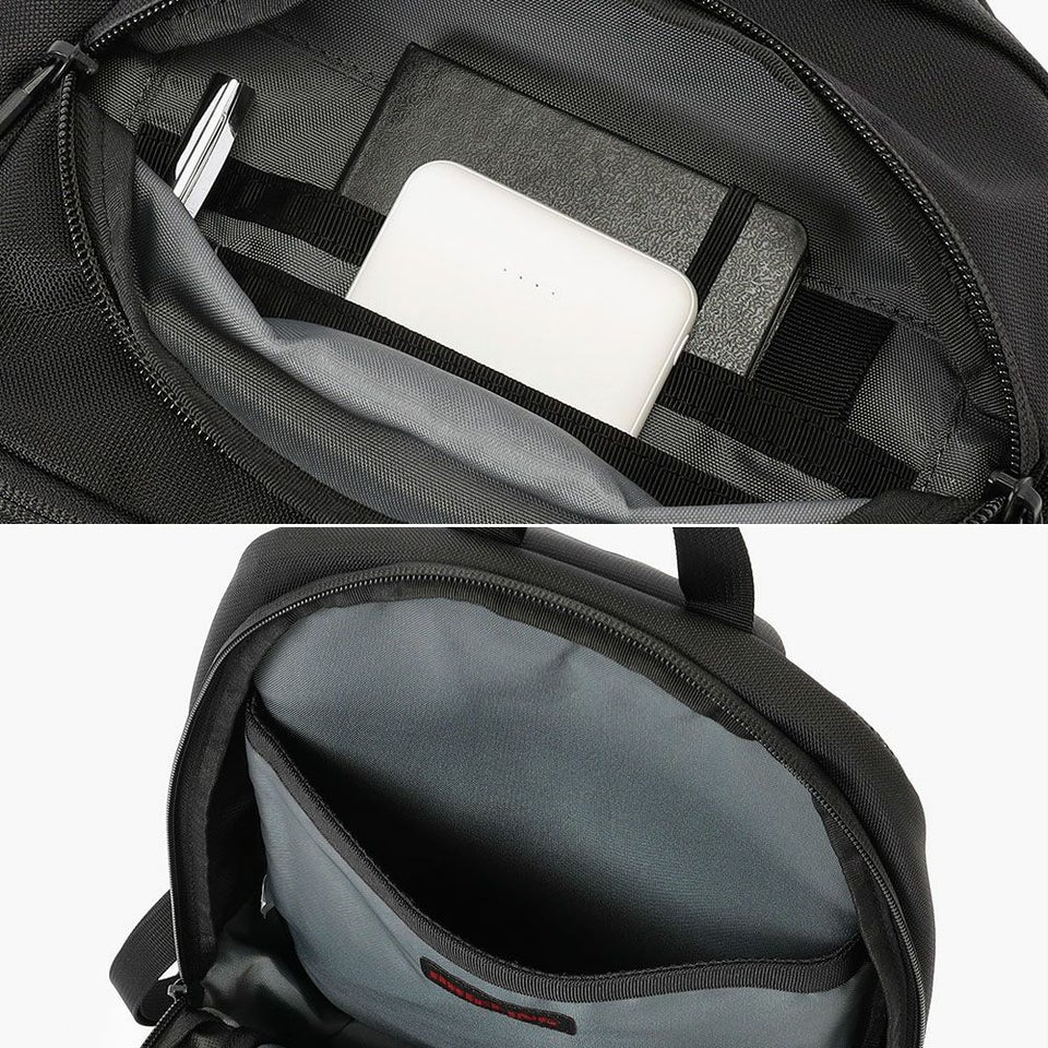 カバンを前に掛けたままでも出し入れしやすいよう、2つのジップポケットをフロントに配置。スマホ・貴重品がサッと取り出せます。