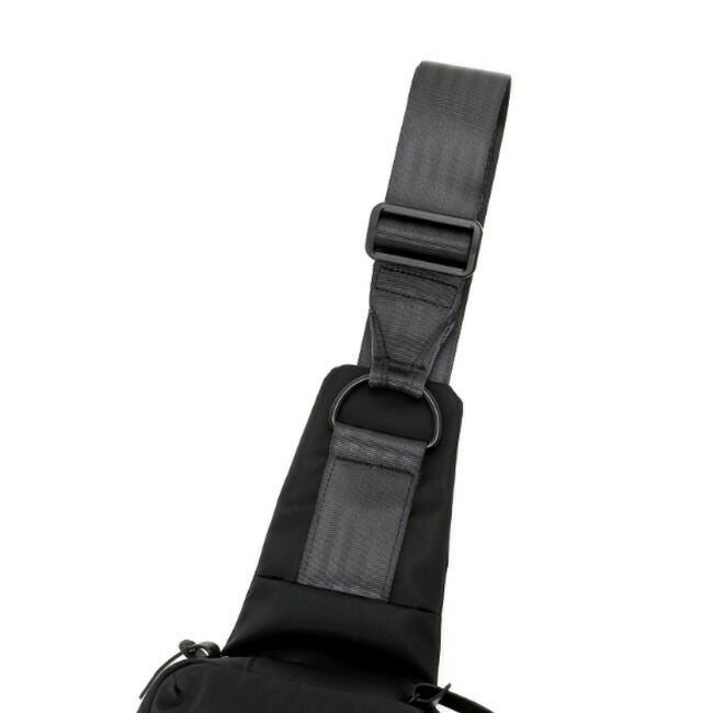 アーバンな雰囲気漂うオールブラックのデザインで、カジュアルスタイルにもジャケットスタイルにも合わせやすいボディバッグです。