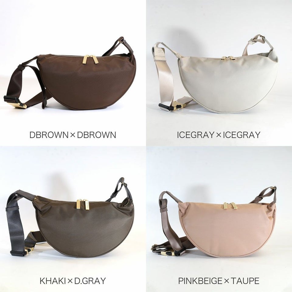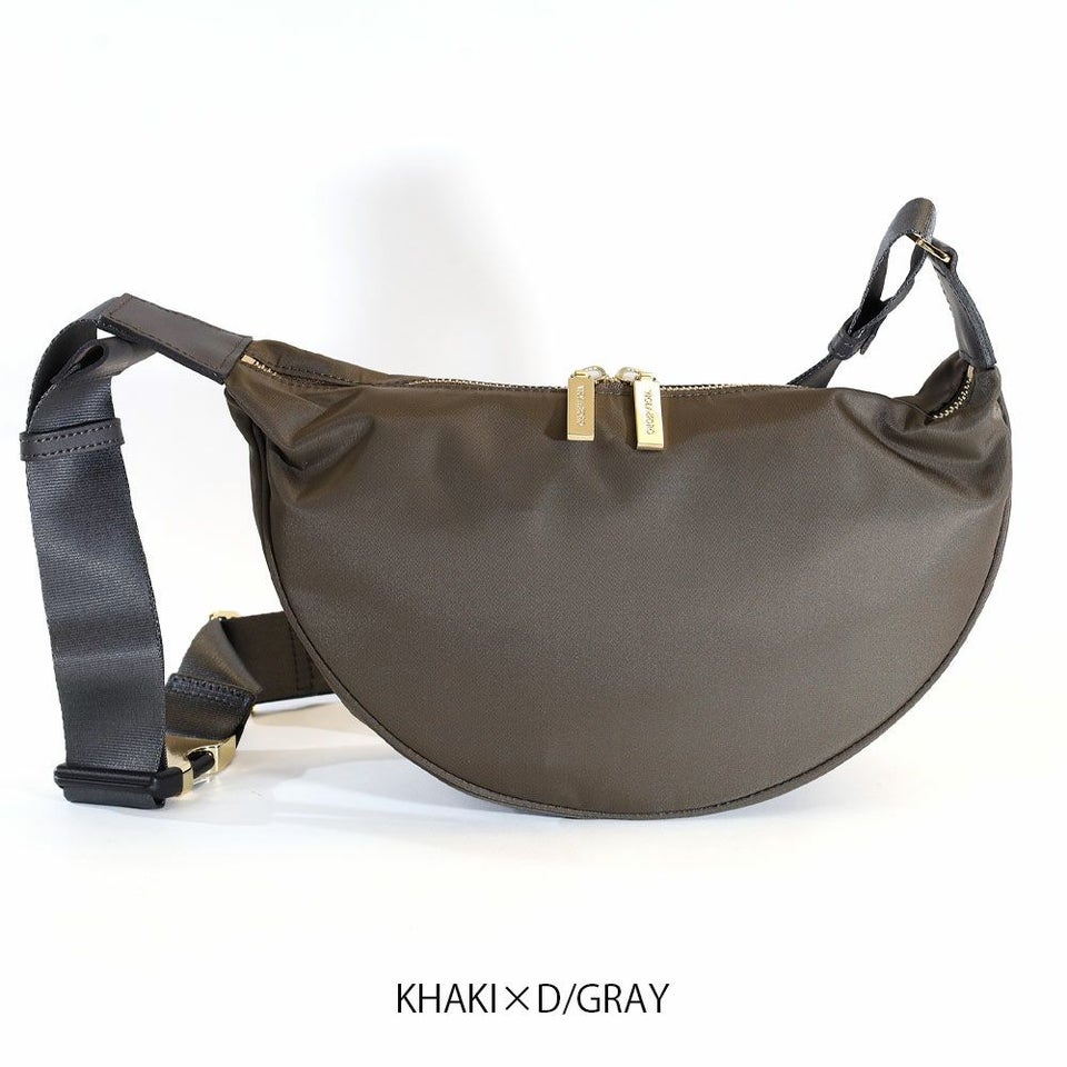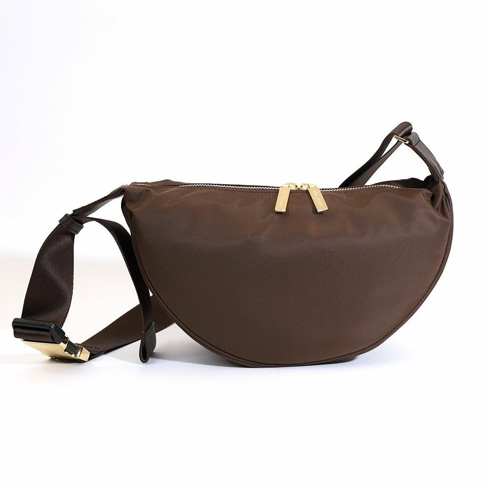 ナイロン素材の軽やかさに、ゴールド金具の華やかさをプラス。カジュアルながらも上品な印象で、日常使いからお出かけまで幅広く活躍します。