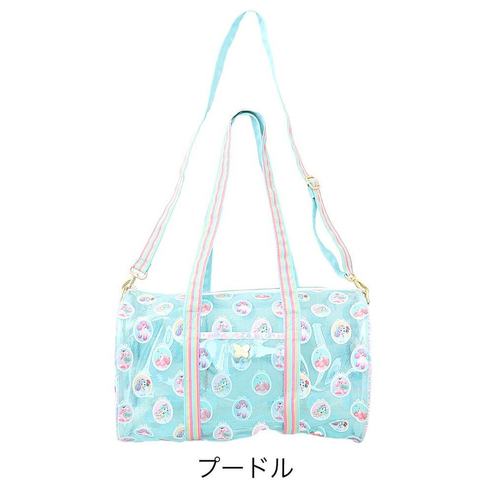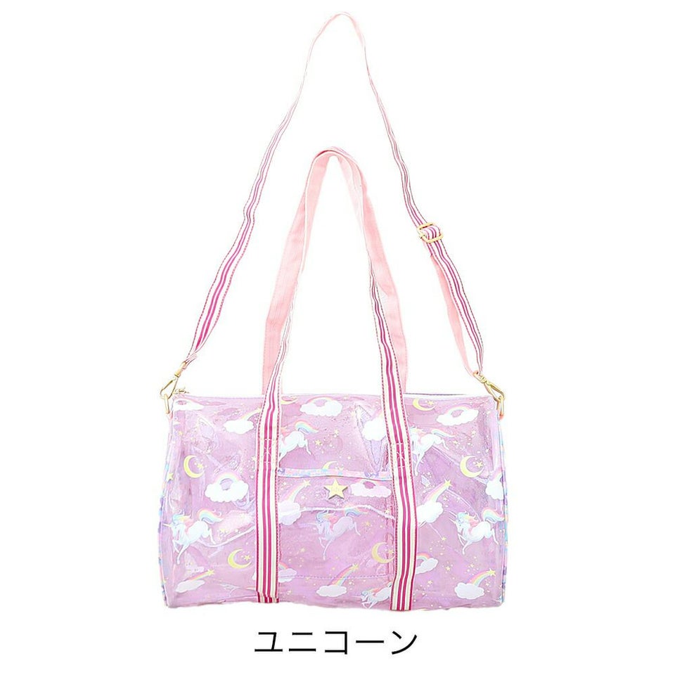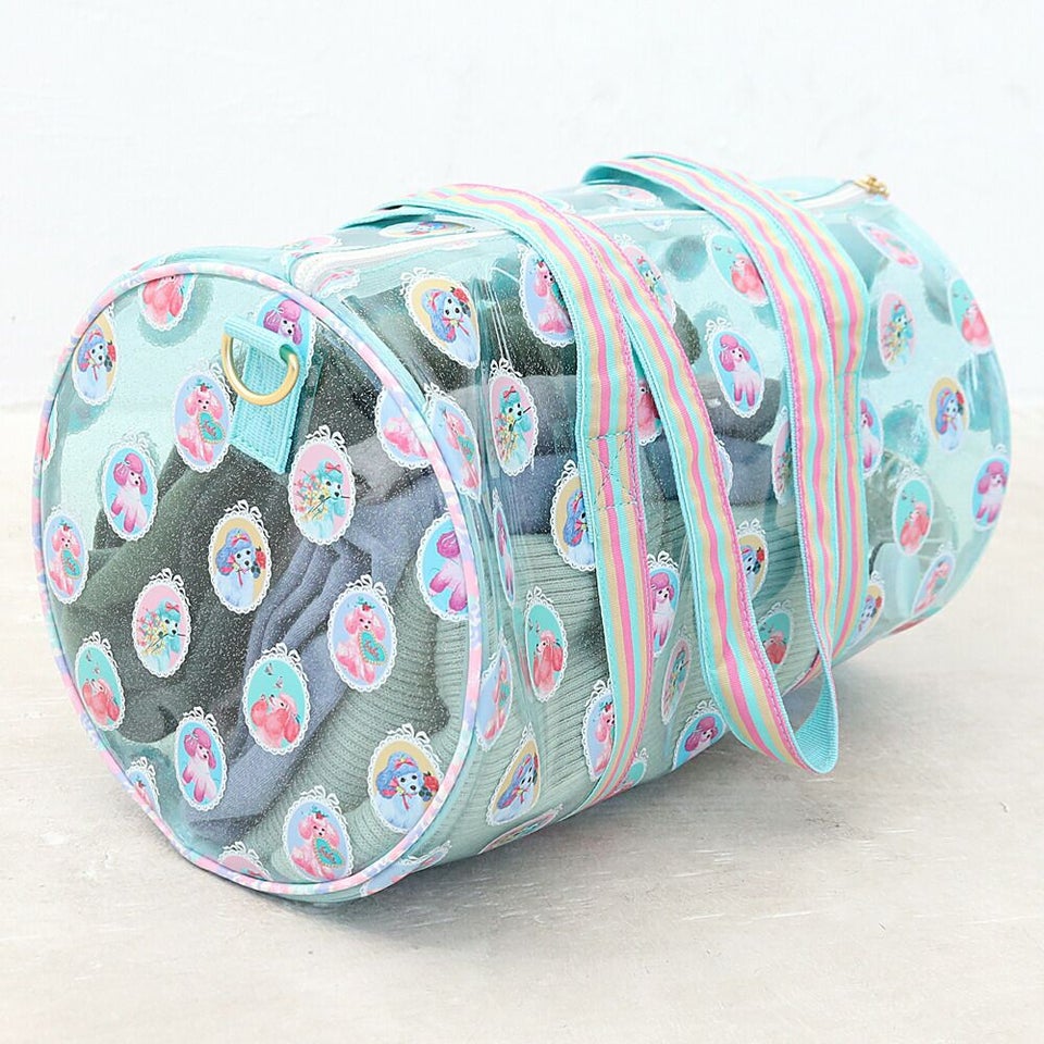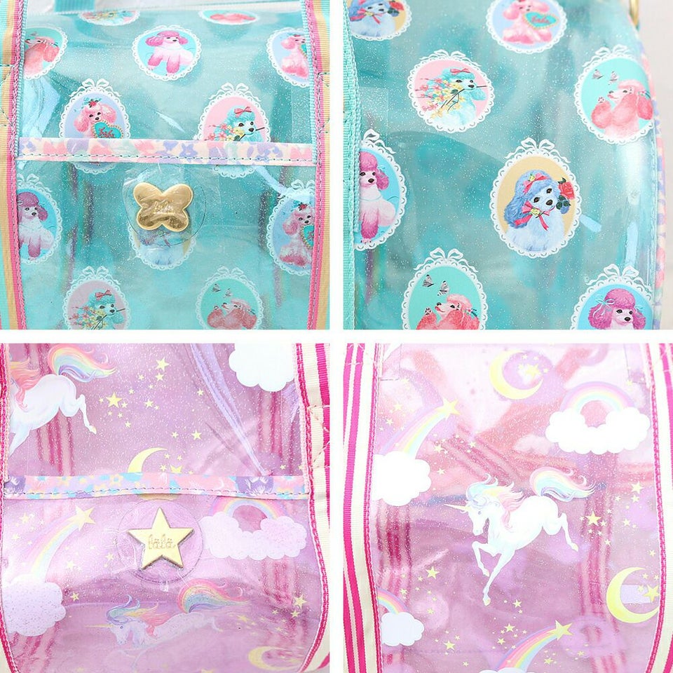 fafa フェフェ 全面クリアのラメ入りPVC素材の総柄が可愛いドラム型プールバッグ