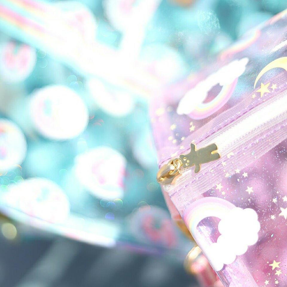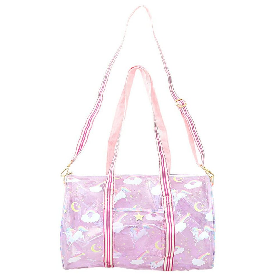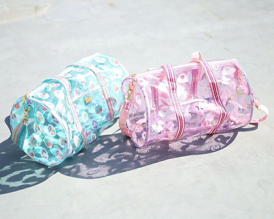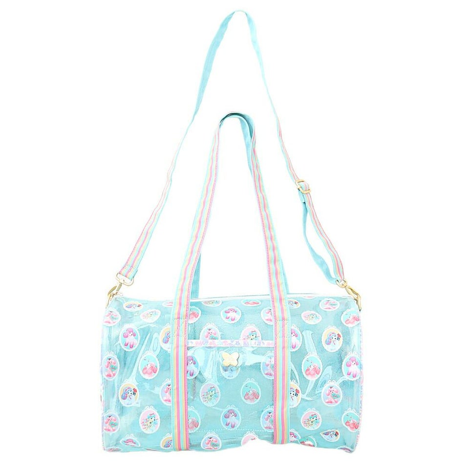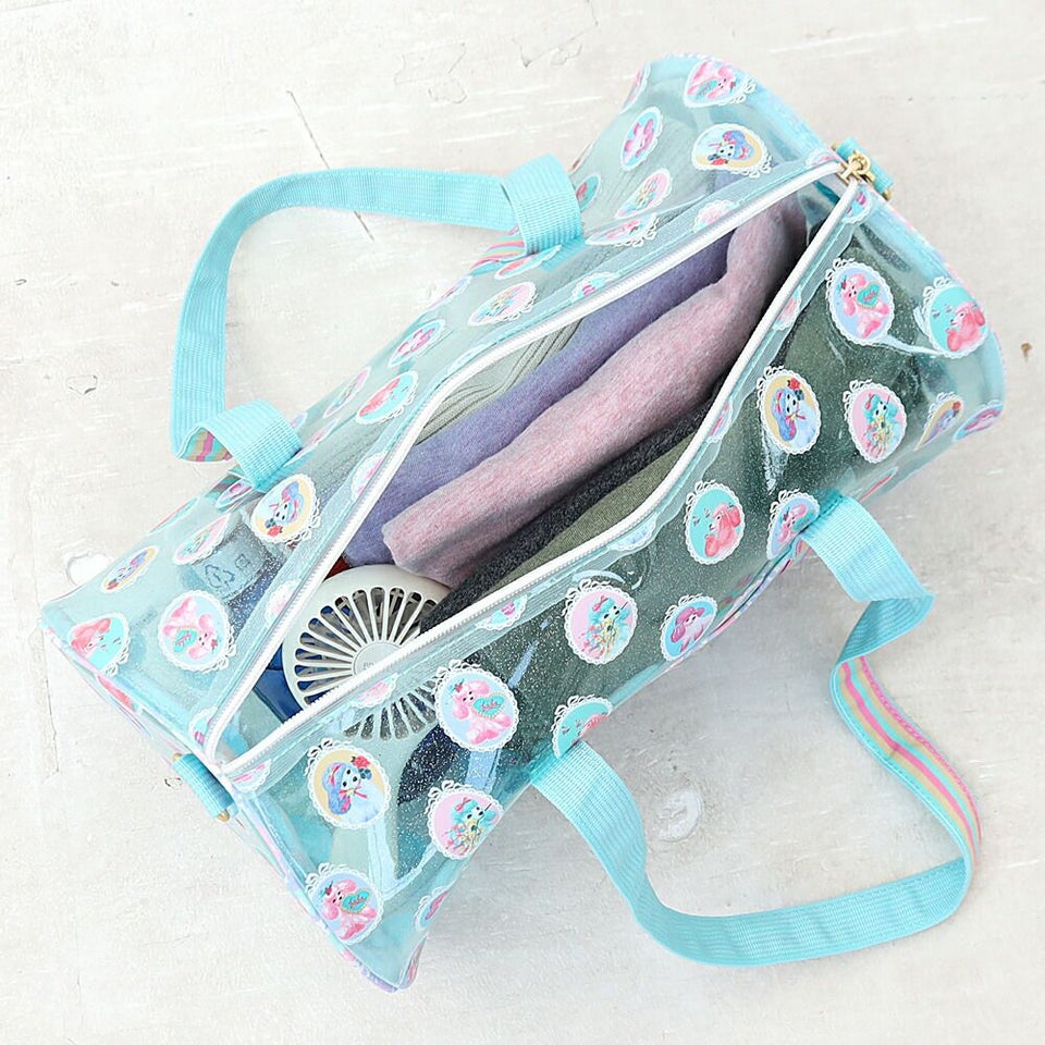 fafa フェフェ 全面クリアのラメ入りPVC素材の総柄が可愛いドラム型プールバッグ